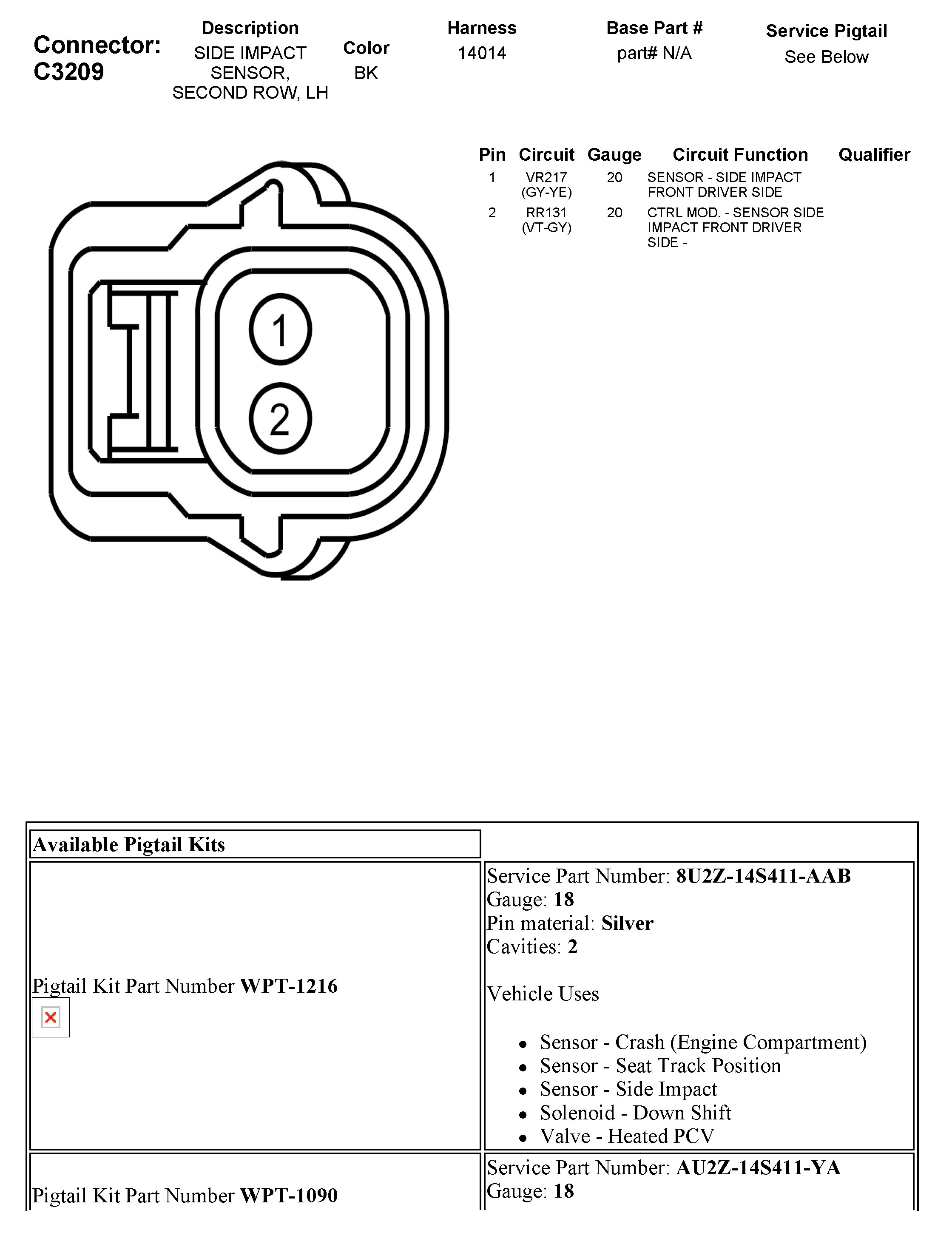 C3209 Side Impact Sensor, Second Row, LH