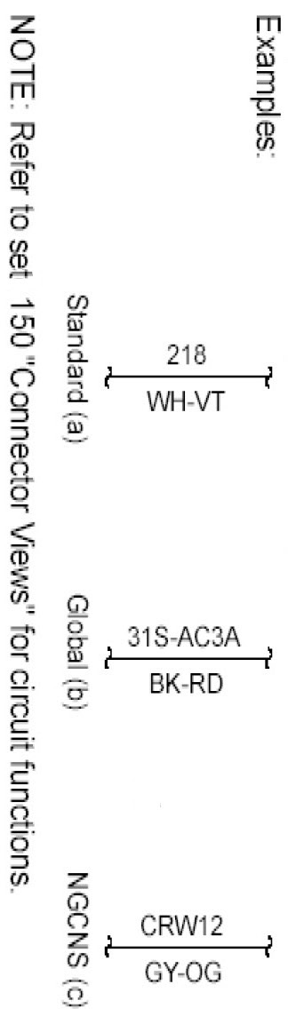 Ford Motor Company uses three different circuit numbering conventions: Standard Circuit Numbering System, Global Circuit Numbering System, and New Global Circuit Numbering System (NGCNS). With each, the circuit number (which identifies a specific circuit function) is followed by the wire color.