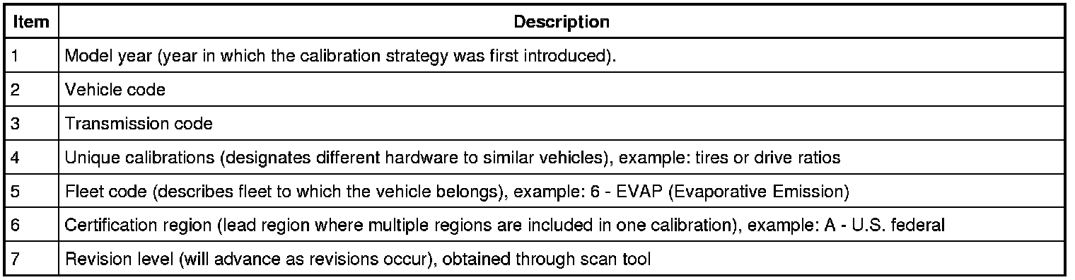 NOTE: Powertrain calibration information is limited to a maximum of 5 characters per line on the VC (Vehicle Certification) label. Because of this, calibration identification consisting of more than 5 characters will wrap to the second line on the VC (Vehicle Certification) label.