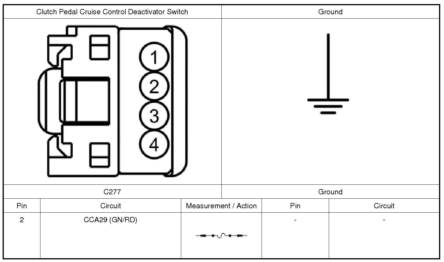 3. CHECK THE CLUTCH PEDAL CRUISE CONTROL DEACTIVATOR SWITCH GROUND CIRCUIT FOR AN OPEN