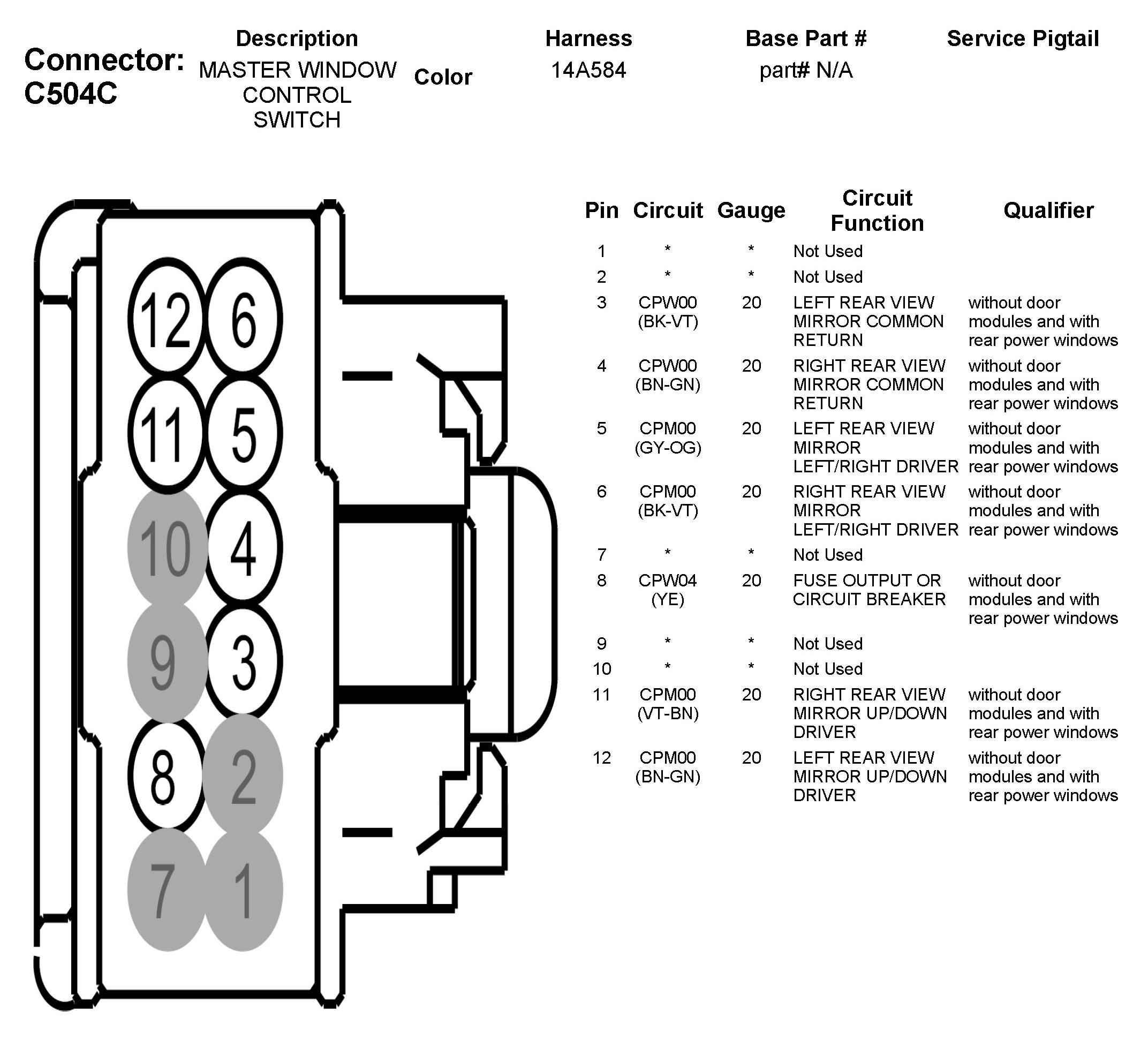 C504C Master Window Control Switch