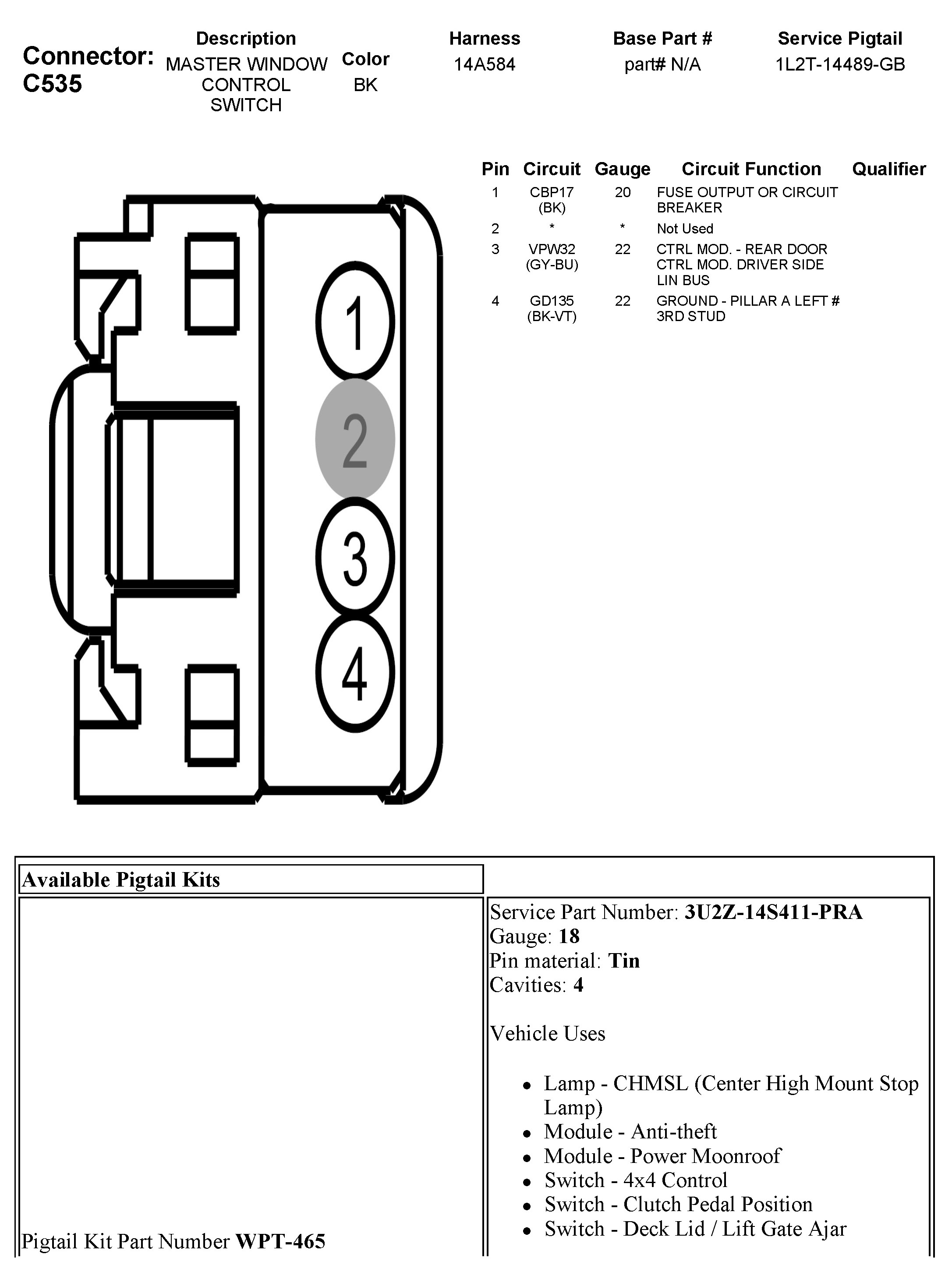 C535 Master Window Control Switch