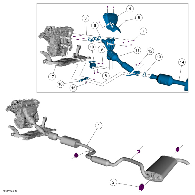 Home >> Ford >> 2012 >> Focus L4-2.0L >> Repair and Diagnosis >> Diagrams >> Exploded Views >> Exhaust System >> System Diagram