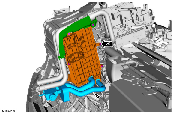 3. Remove the 5 evaporator core cover screws. Remove the heater tube cover, evaporator core cover and remove the evaporator core.