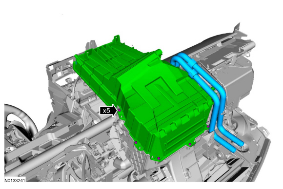 3. Remove the 5 evaporator core cover screws. Remove the heater tube cover and the evaporator core cover.