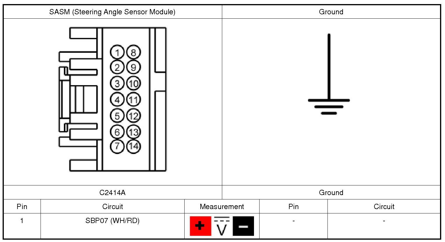 2. CHECK THE SASM (Steering Angle Sensor Module) GROUND CIRCUIT FOR AN OPEN