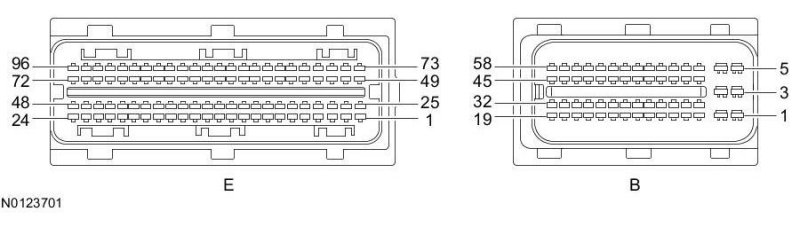 Powertrain Control Module (PCM) Connector - For PCM connector views or reference values, refer to Reference Values.