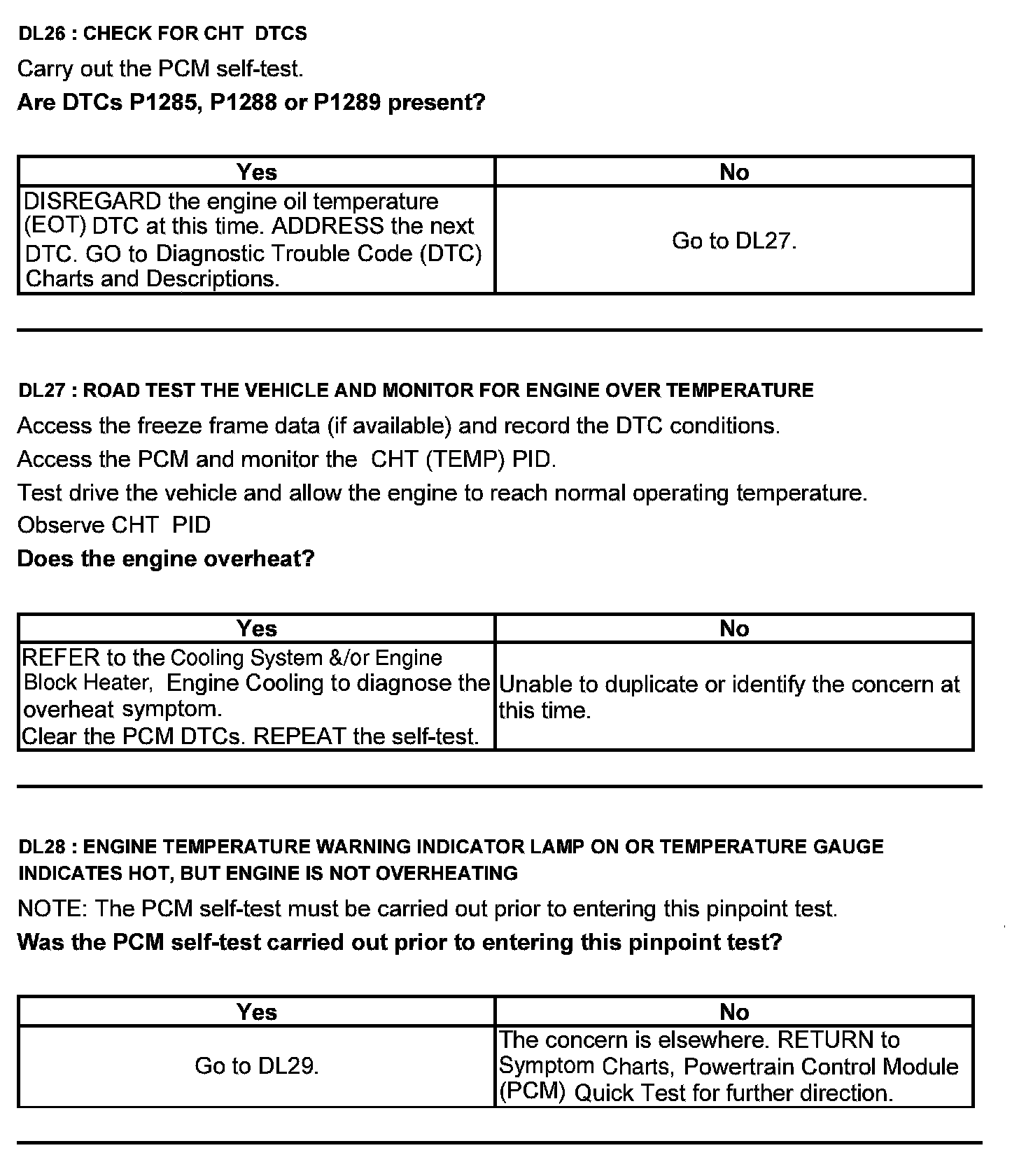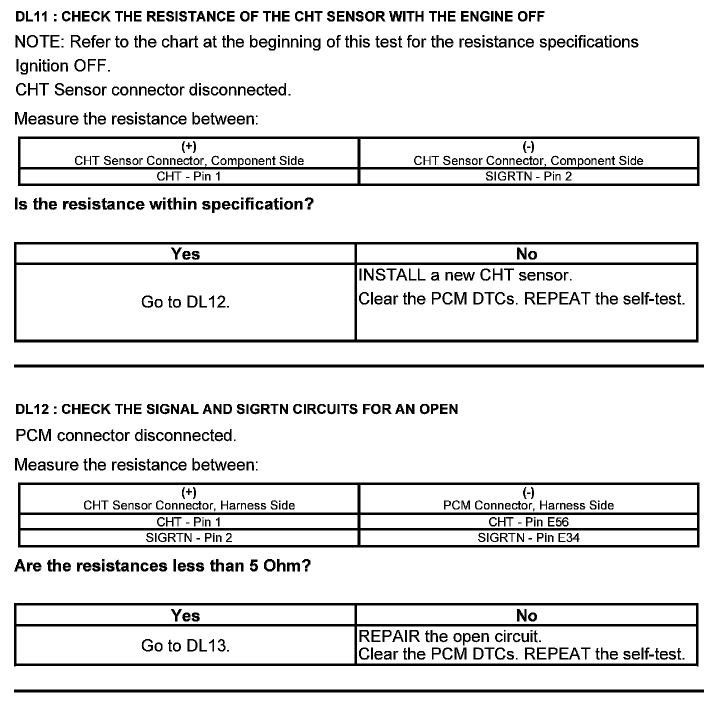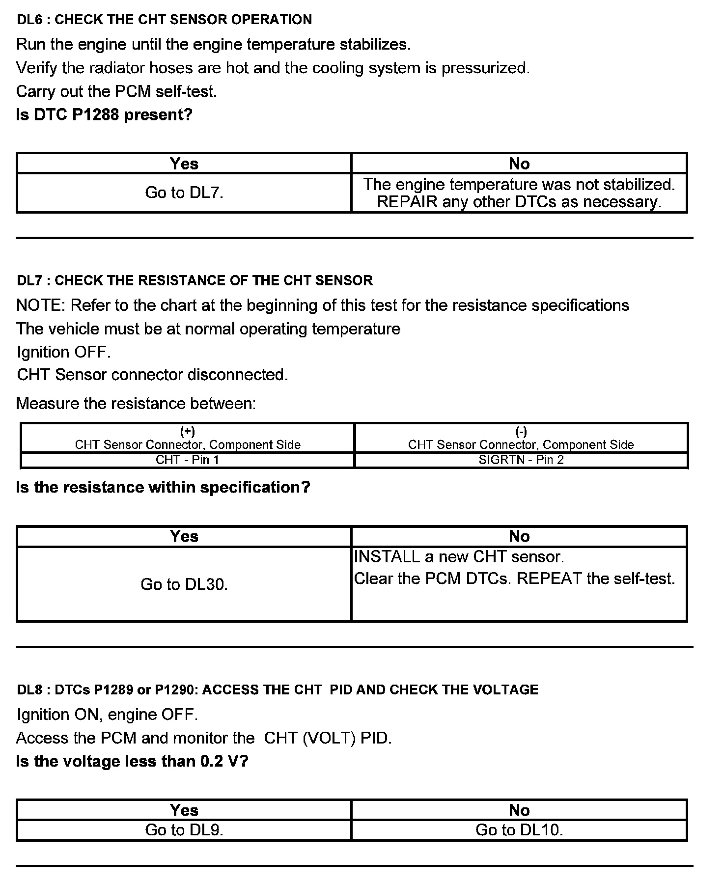 Home >> Ford >> 2012 >> Focus L4-2.0L >> Repair and Diagnosis >> Powertrain Management >> Computers and Control Systems >> Testing and Inspection >> Pinpoint Tests >> Test DL: Cylinder Head Temperature (CHT) Sensor