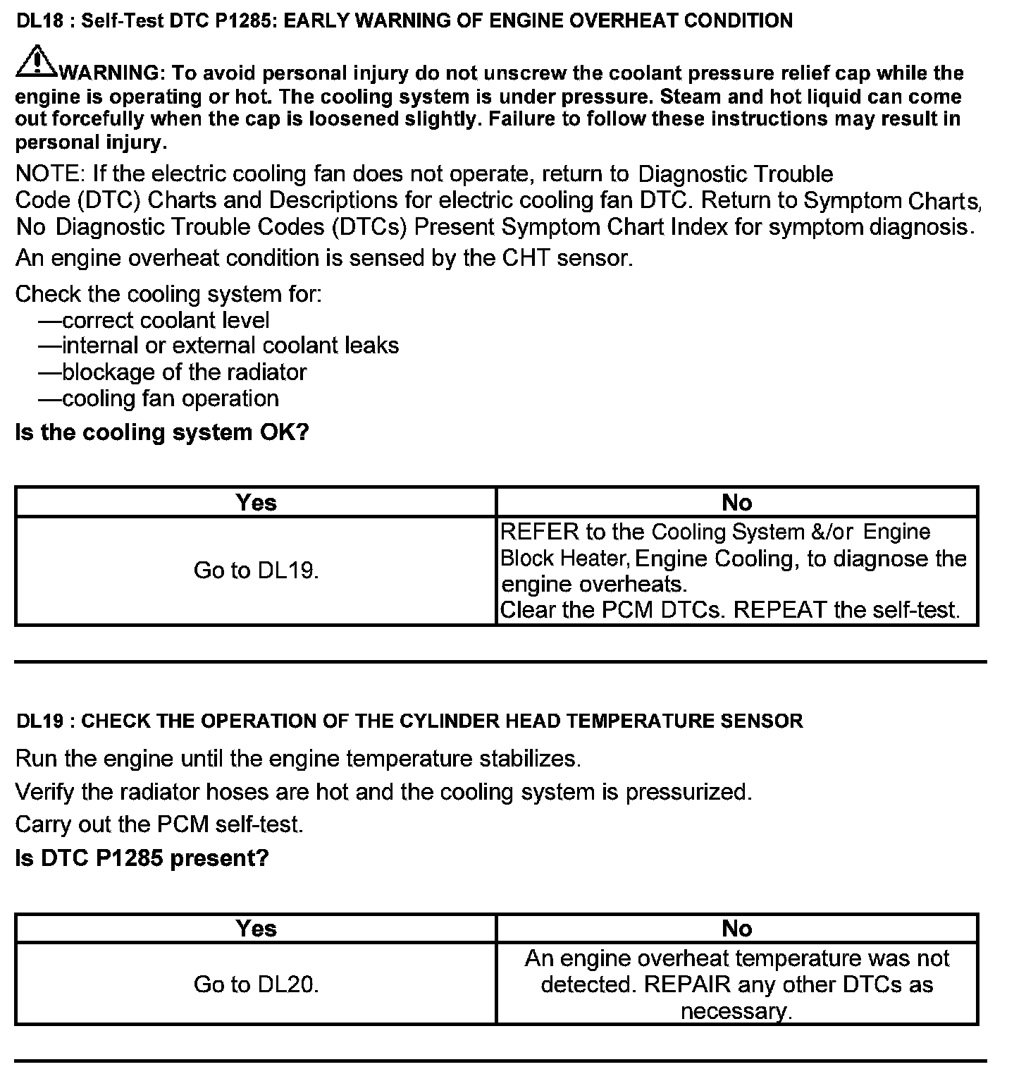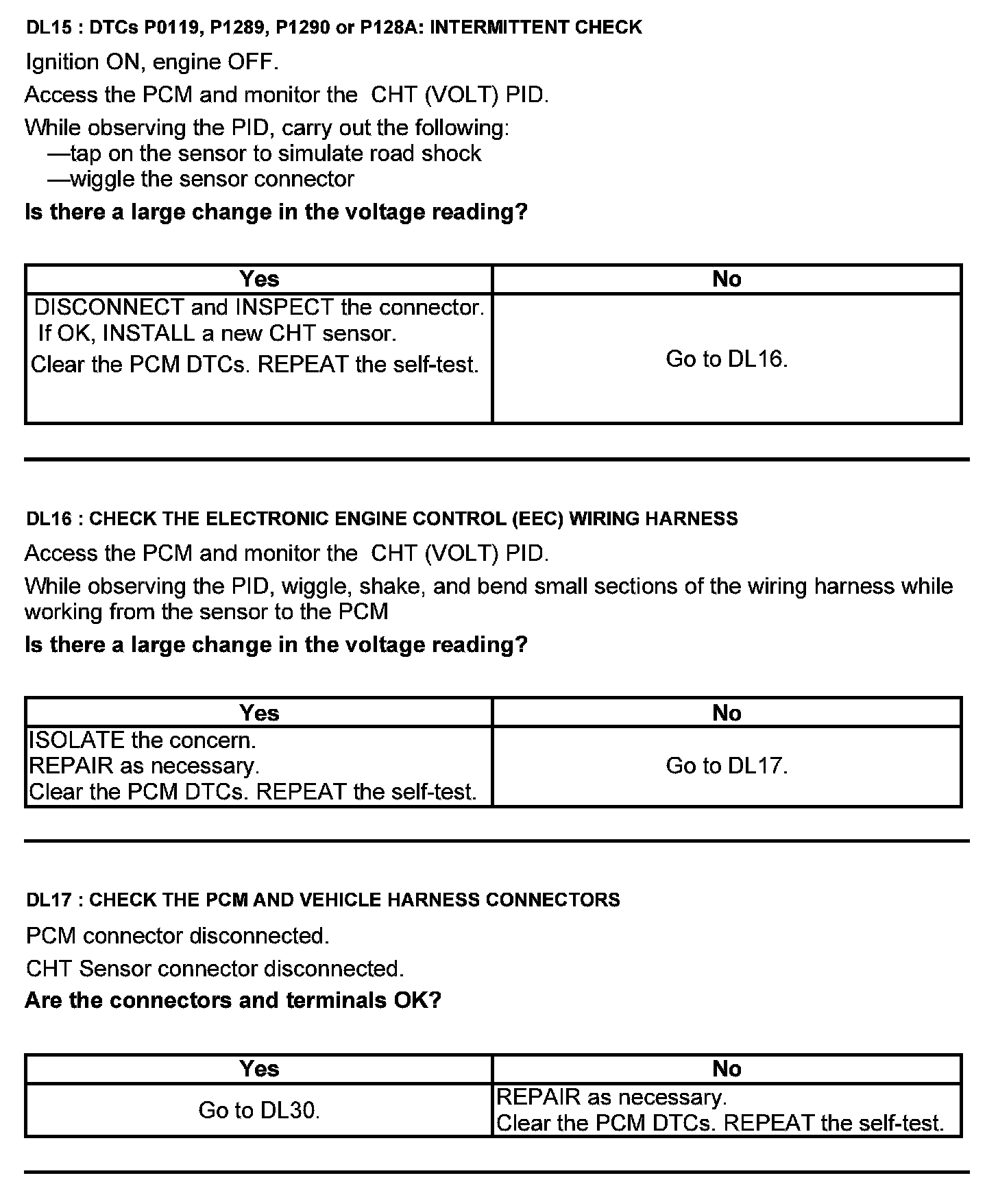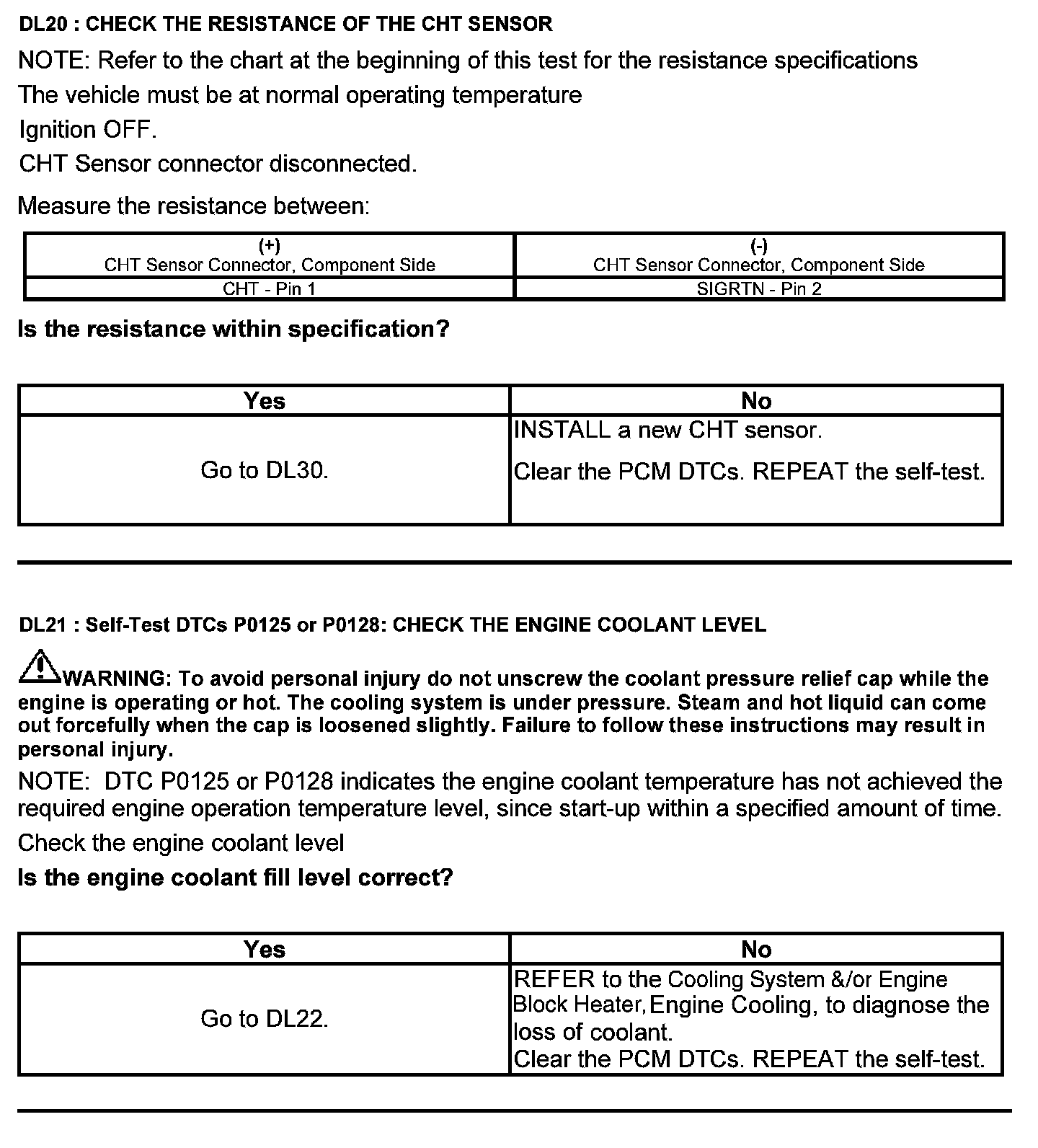 Home >> Ford >> 2012 >> Focus L4-2.0L >> Repair and Diagnosis >> Powertrain Management >> Computers and Control Systems >> Testing and Inspection >> Pinpoint Tests >> Test DL: Cylinder Head Temperature (CHT) Sensor