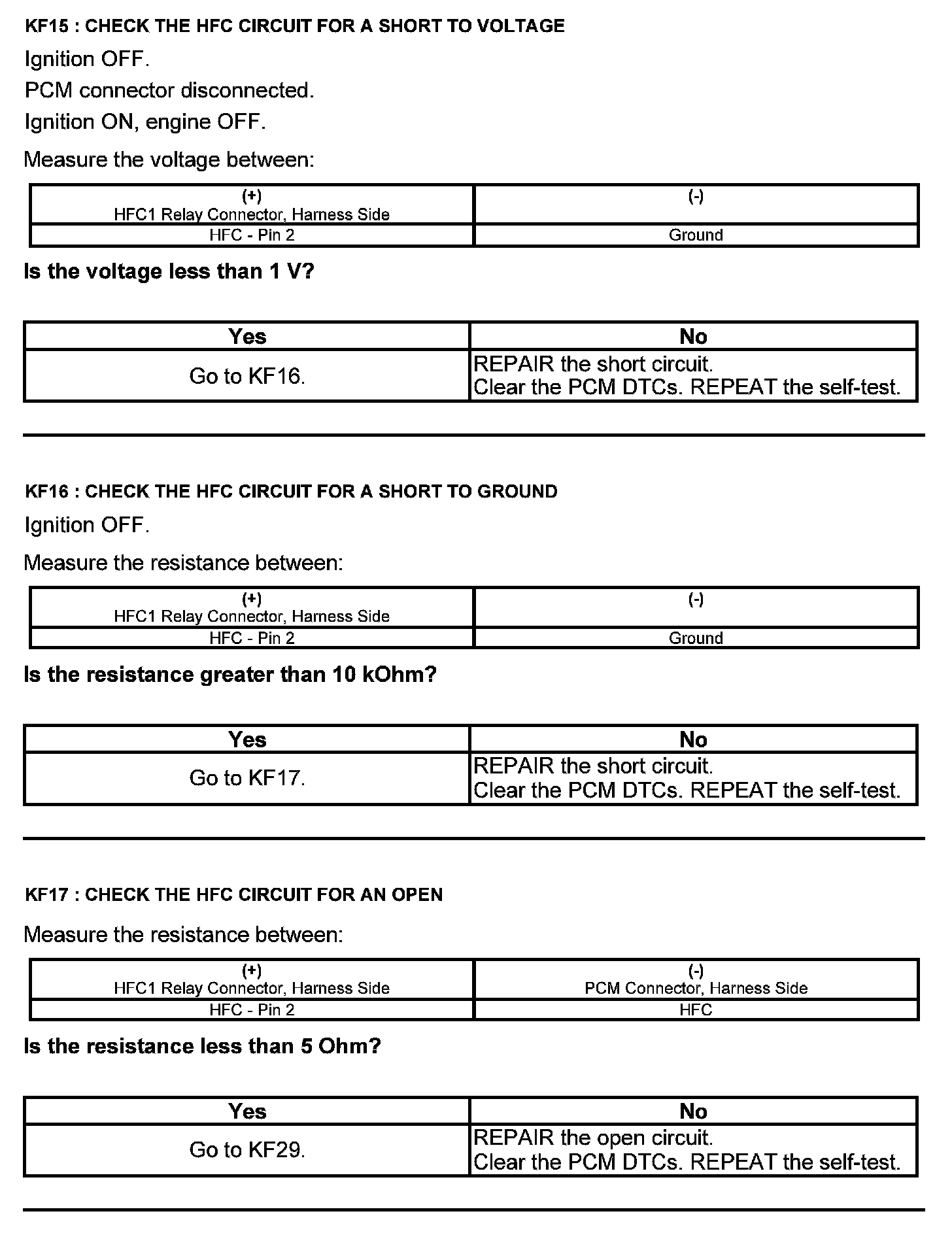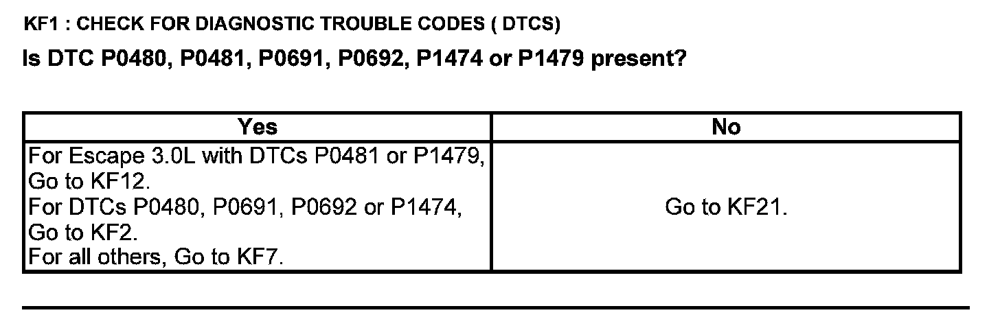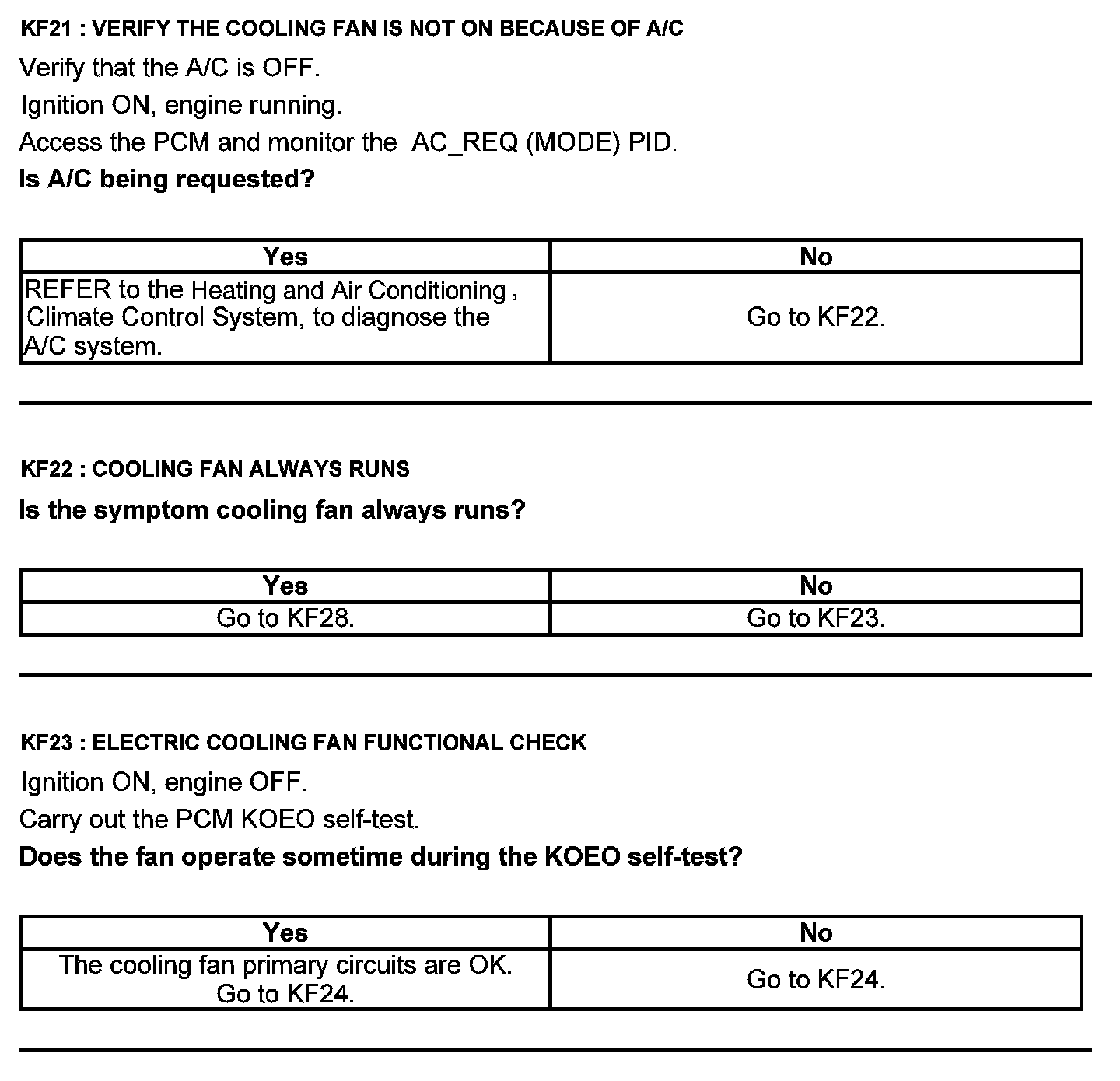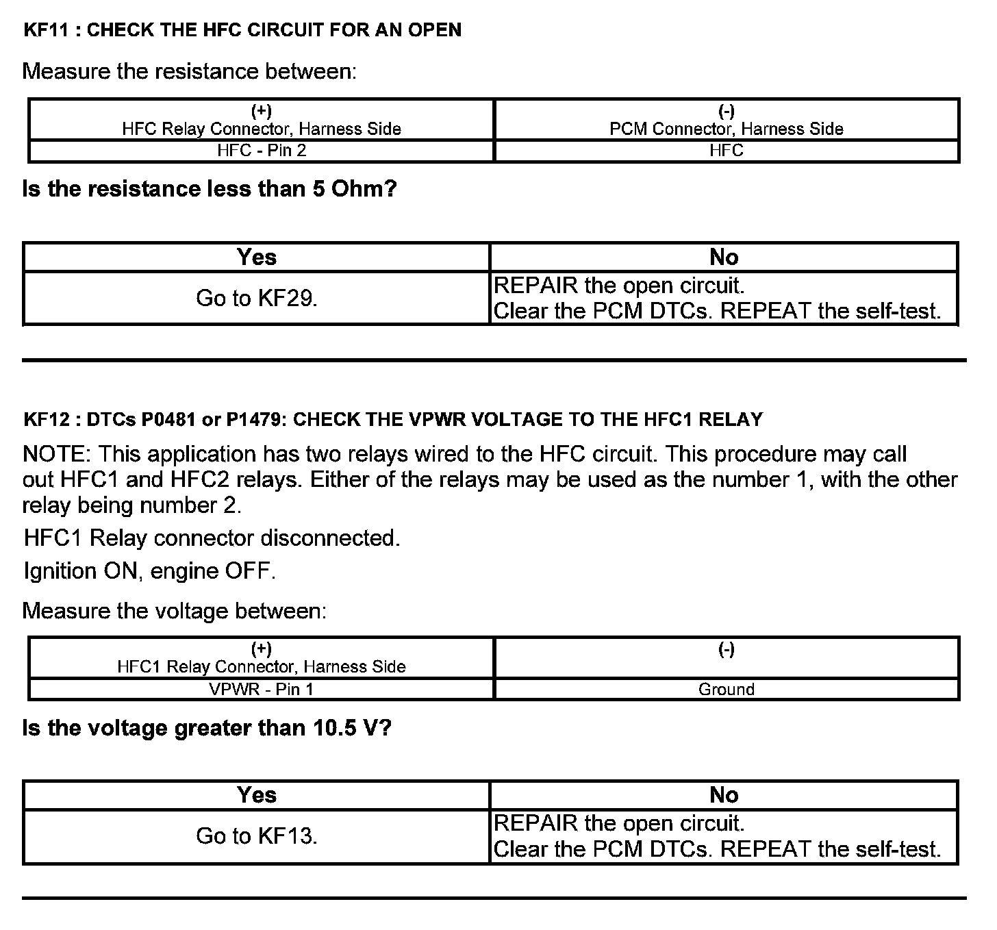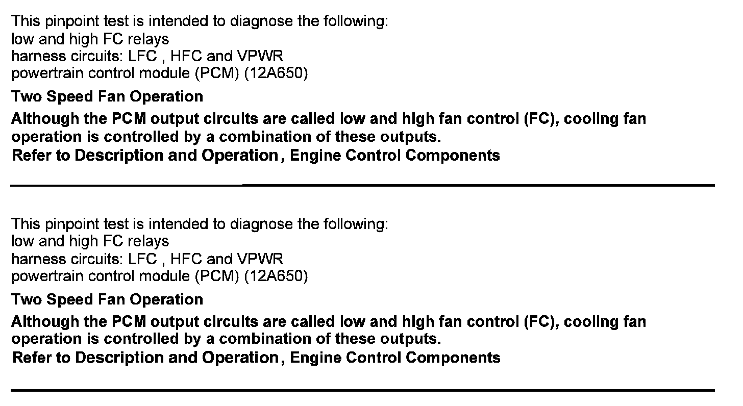 Home >> Ford >> 2012 >> Focus L4-2.0L >> Repair and Diagnosis >> Powertrain Management >> Computers and Control Systems >> Testing and Inspection >> Pinpoint Tests >> Test KF: Fan Control Relays
