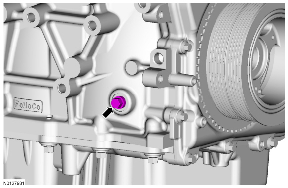 6. NOTE: The cylinder block plug is located on the exhaust side of the engine block near the CKP (Crankshaft Position) sensor.