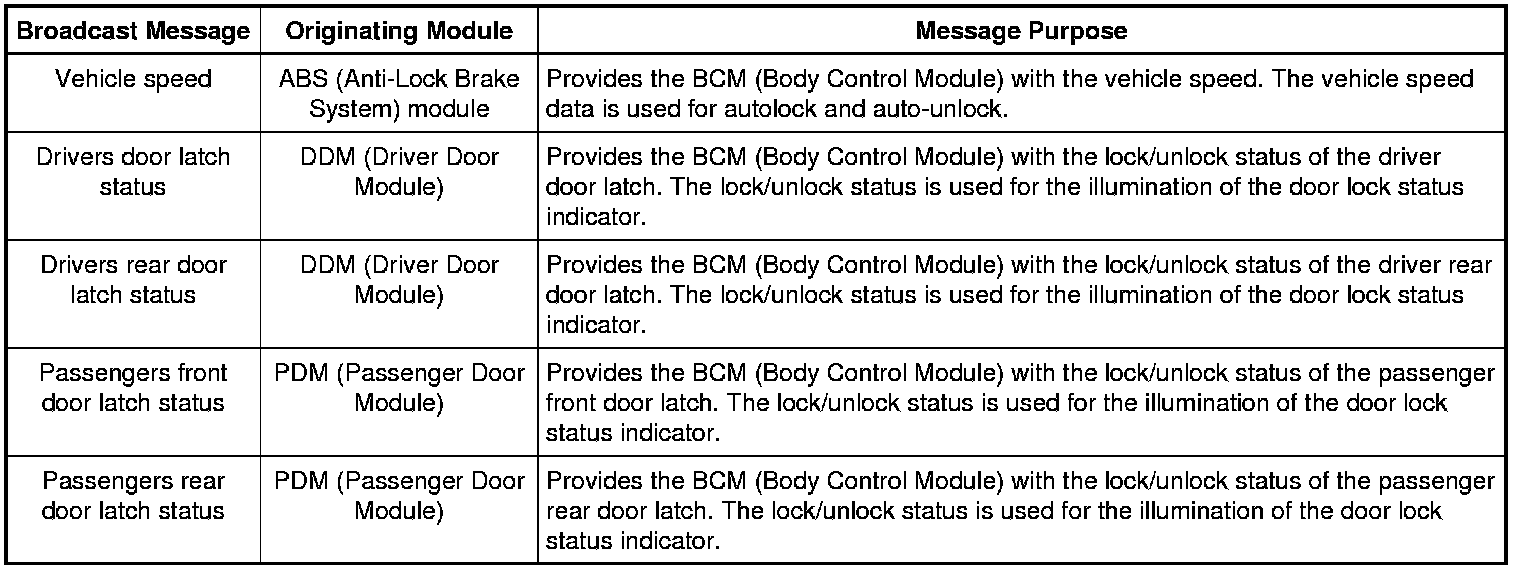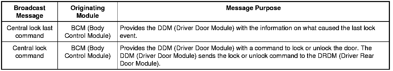 Module Network Input Messages - DDM (Driver Door Module)