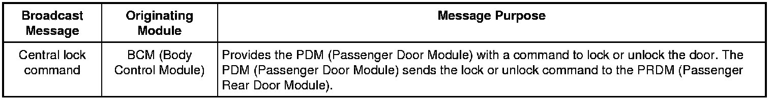 Module Network Input Messages - PDM (Passenger Door Module)