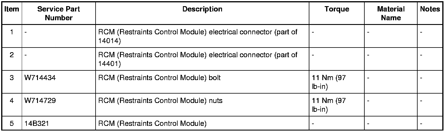 1. PMI (Programmable Module Installation) is required when installing a new RCM (Restraints Control Module). Refer to the scan tool instructions to carry out PMI (Programmable Module Installation).