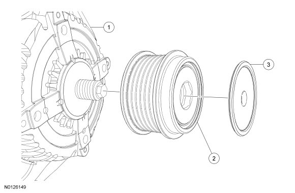 NOTE: Use a 17 mm, 55 lb-ft green torque stick, to install the clutch pulley.