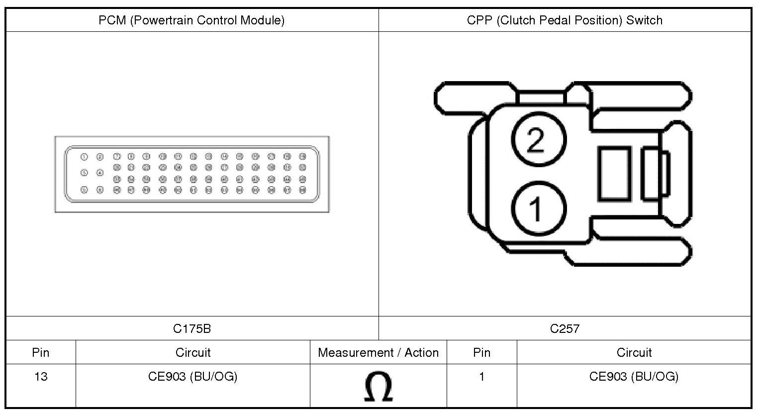 - Inspect the CPP (Clutch Pedal Position) switch (manual transmission only).