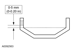 6. Using an oil suction gun, fill the transmission to the correct level with the specified transmission fluid. Transmission fluid level: 0 mm (0 in)-5 mm (0.1969 in) below the lower edge of the fill plug bore.