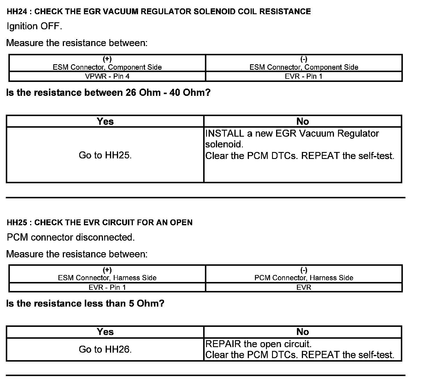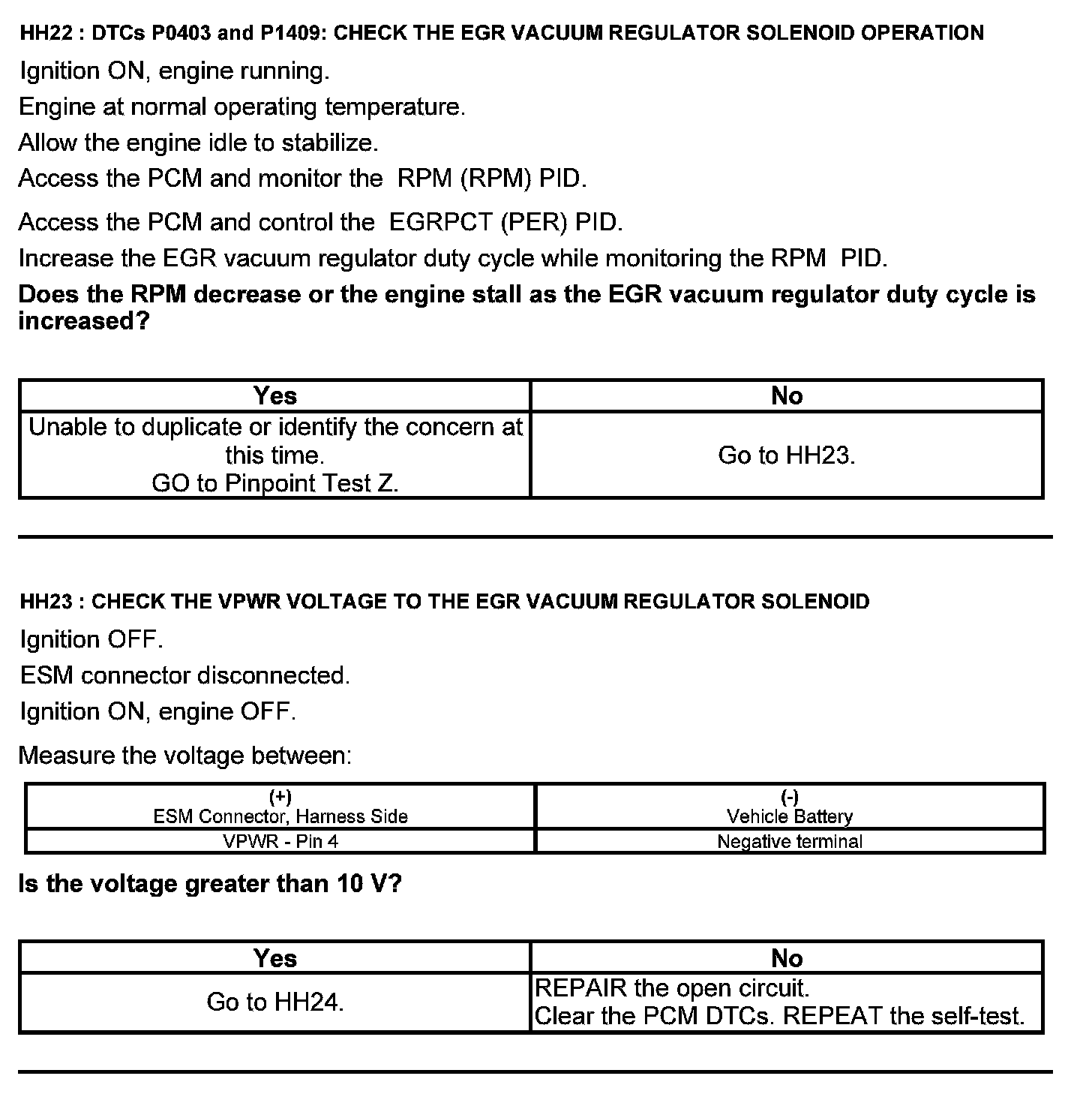 Home >> Ford >> 2012 >> Fusion AWD V6-3.0L Flex Fuel >> Repair and Diagnosis >> Powertrain Management >> Computers and Control Systems >> Testing and Inspection >> Pinpoint Tests >> Test HH: Exhaust Gas Recirculation System Module (ESM)