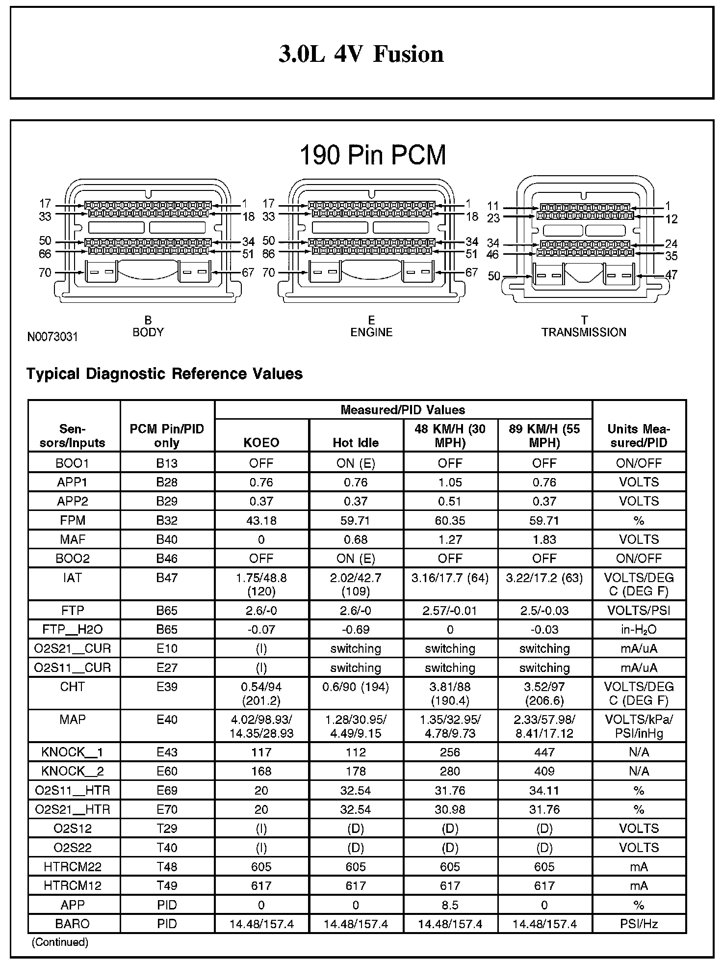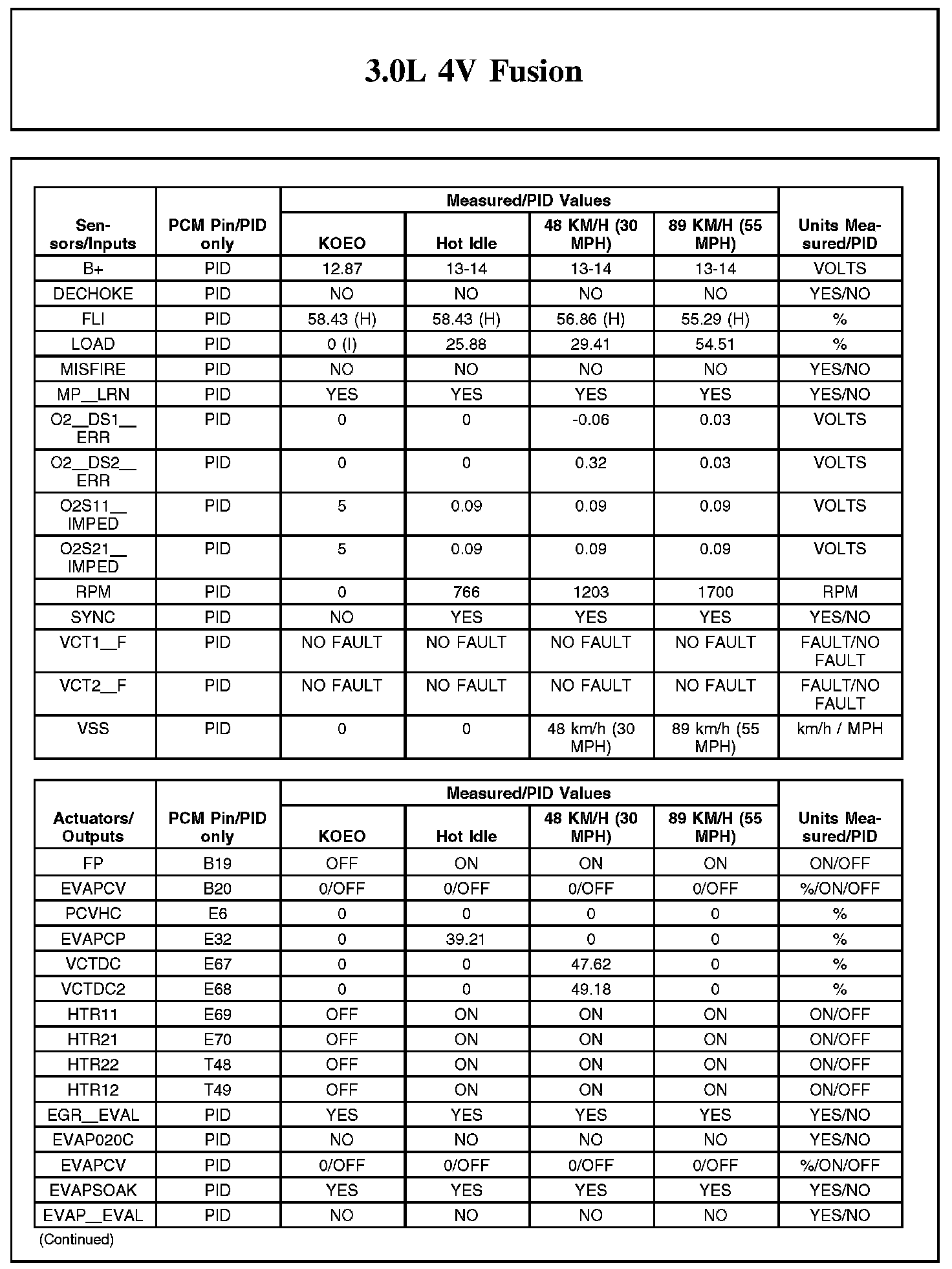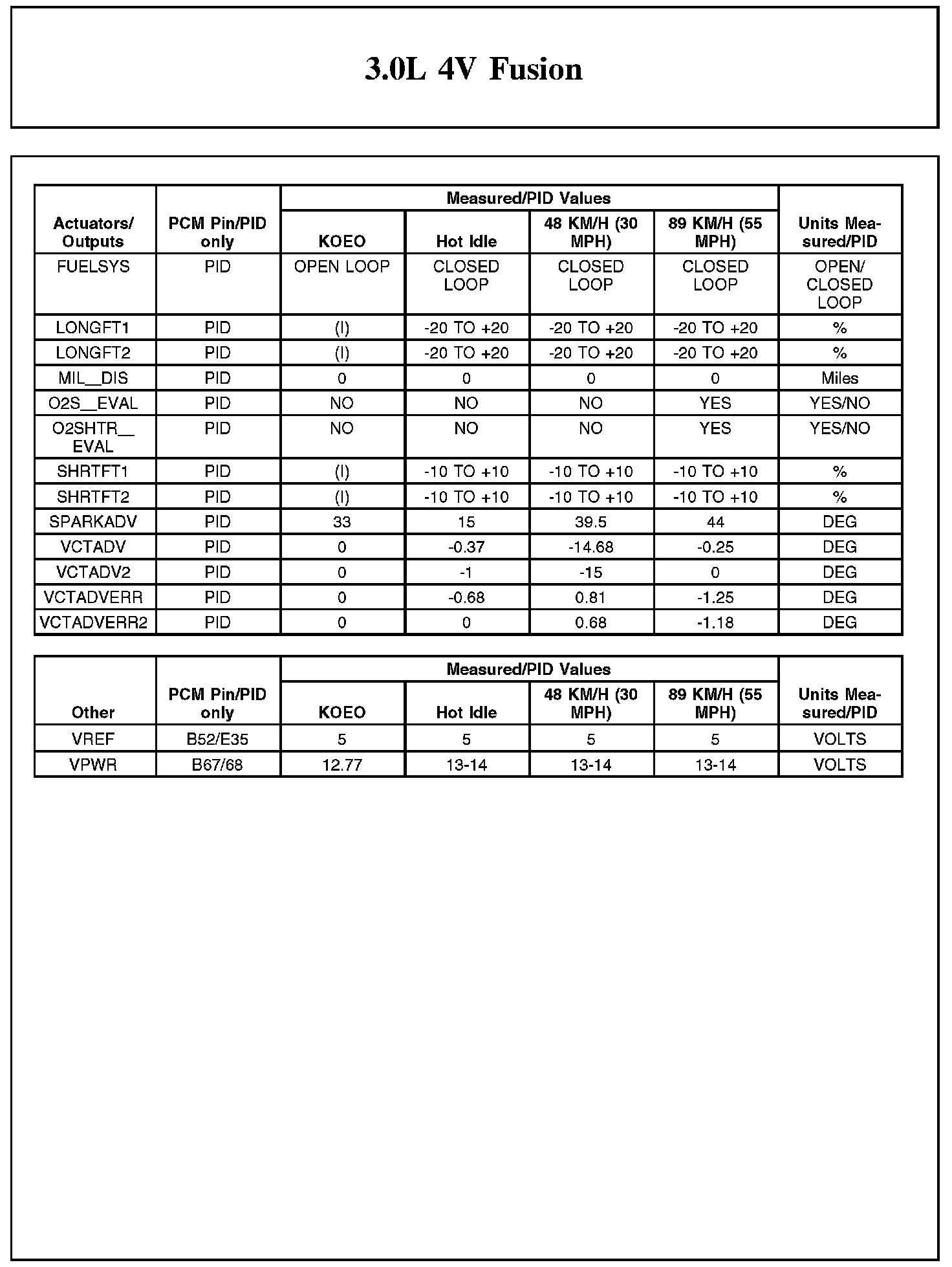 Home >> Ford >> 2012 >> Fusion AWD V6-3.0L Flex Fuel >> Repair and Diagnosis >> Powertrain Management >> Computers and Control Systems >> Testing and Inspection >> Scan Tool Testing and Procedures >> Typical Diagnostic Reference Values