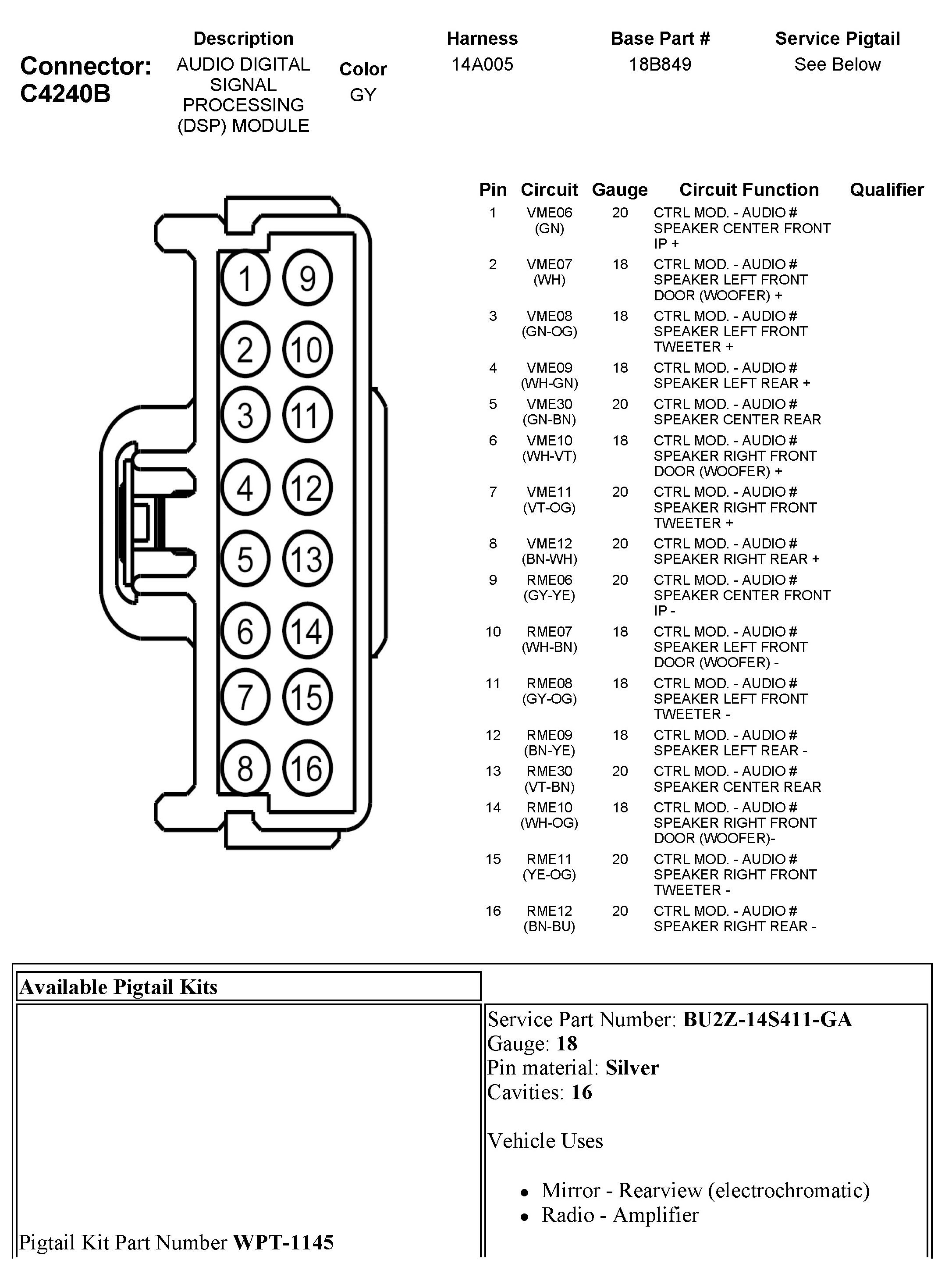 Home >> Ford >> 2012 >> Fusion AWD V6-3.5L >> Repair and Diagnosis >> Diagrams >> Connector Views >> Communications Control Module >> C4240B Audio Digital Signal Processing (DSP) Module