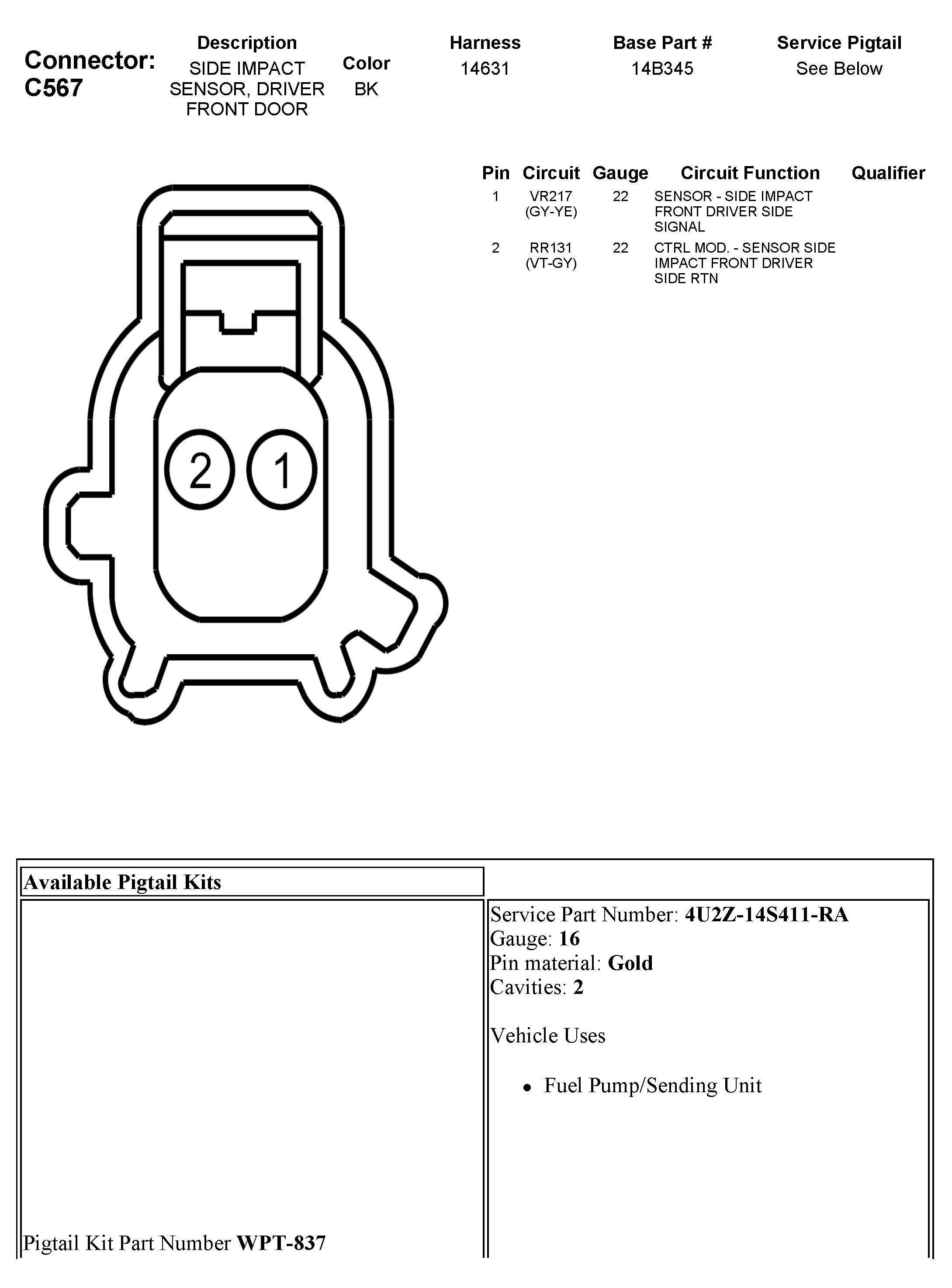 C567 Side Impact Sensor, Driver Front Door