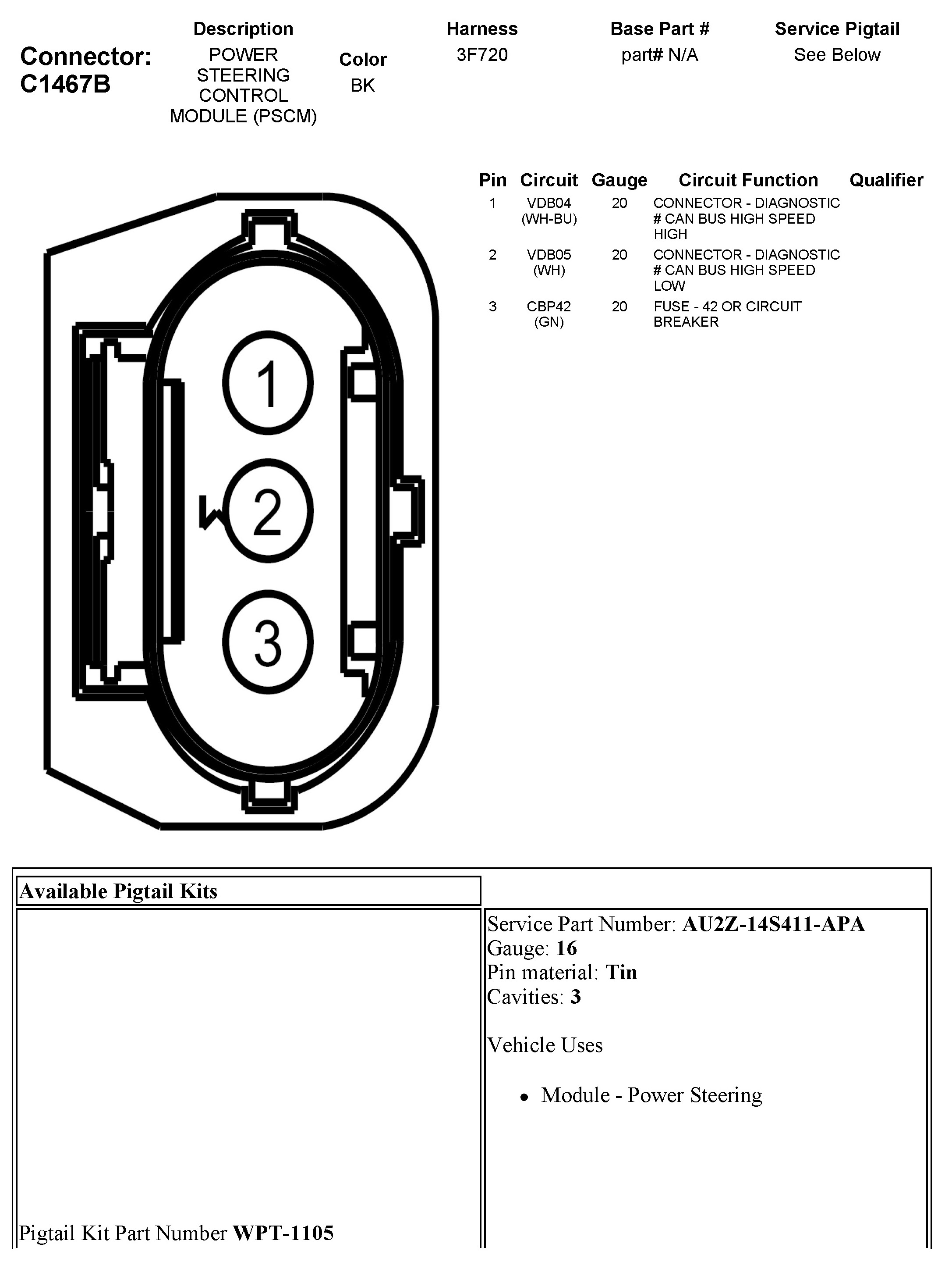 C1467B Power Steering Control Module (PSCM)