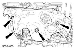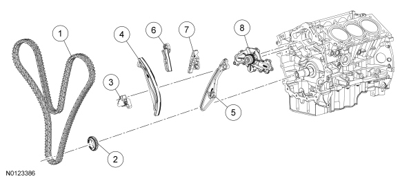 NOTICE: During engine repair procedures, cleanliness is extremely important. All parts must be thoroughly cleaned and any foreign material, including any material created while cleaning gasket surfaces, that enters the oil passages, coolant passages or the oil pan, can cause engine failure.