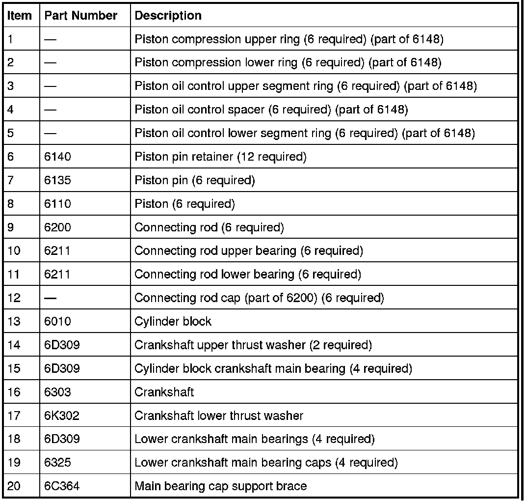 NOTE: Assembly of the engine requires various inspections/measurements of the engine components (engine block, crankshaft, connecting rods, pistons and piston rings). These inspections/measurements will aid in determining if the engine components will require replacement.