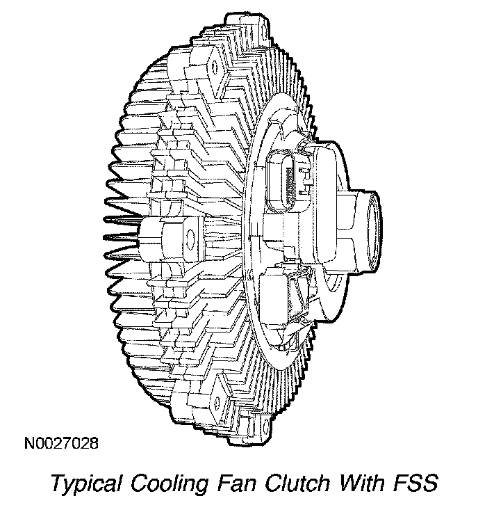 The cooling fan clutch actuator valve controls the fluid flow from the reservoir into the working chamber. Once viscous fluid is in the working chamber, shearing of the fluid results in fan rotation. The cooling fan clutch actuator valve is activated with a pulse width modulated (PWM) output signal from the PCM. By opening and closing the fluid port valve, the PCM can control the cooling fan speed. The cooling fan speed is measured by a Hall effect sensor and is monitored by the PCM during closed loop operation.