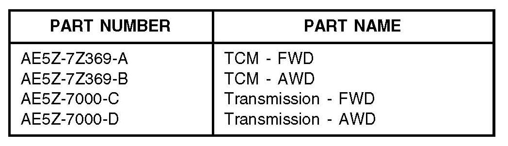 Home >> Ford >> 2012 >> Fusion AWD V6-3.5L >> Repair and Diagnosis >> Powertrain Management >> Computers and Control Systems >> Engine Control Module >> Technical Service Bulletins >> Customer Interest >> A/T Controls - AWF21 Unique TCM Part, Service Info.
