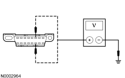 - Measure the voltage between the DLC (Data Link Connector) C251-6, circuit VDB04 (WH/BU), harness side and ground; and between the DLC (Data Link Connector) C251-14, circuit VDB05 (WH), harness side and ground.