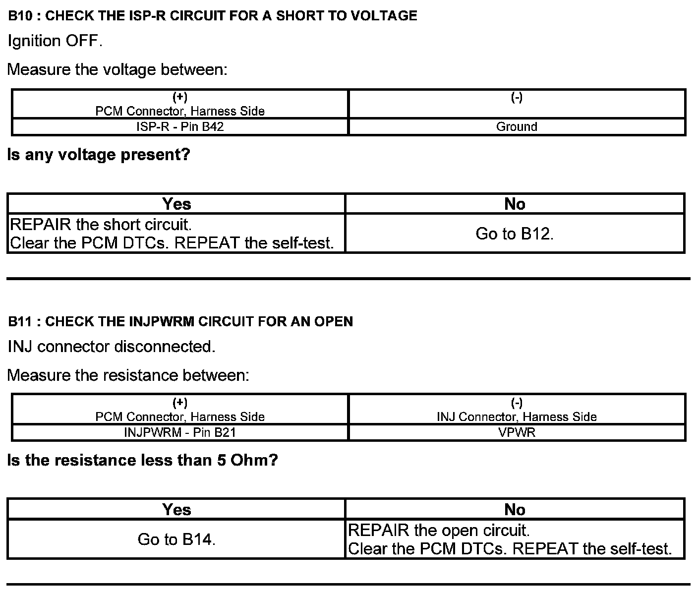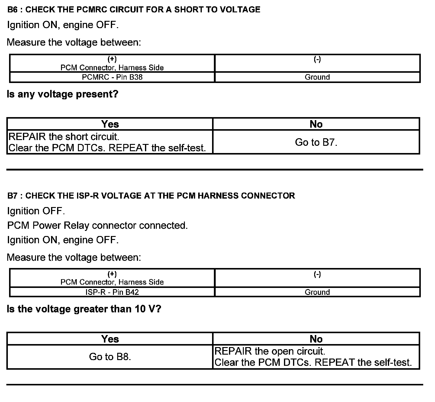 Home >> Ford >> 2012 >> Fusion AWD V6-3.5L >> Repair and Diagnosis >> Powertrain Management >> Computers and Control Systems >> Testing and Inspection >> Pinpoint Tests >> Test B: Powertrain Control Module (PCM) Power Relay