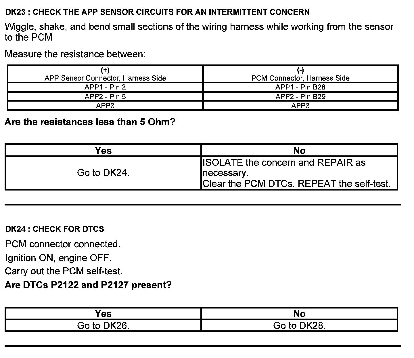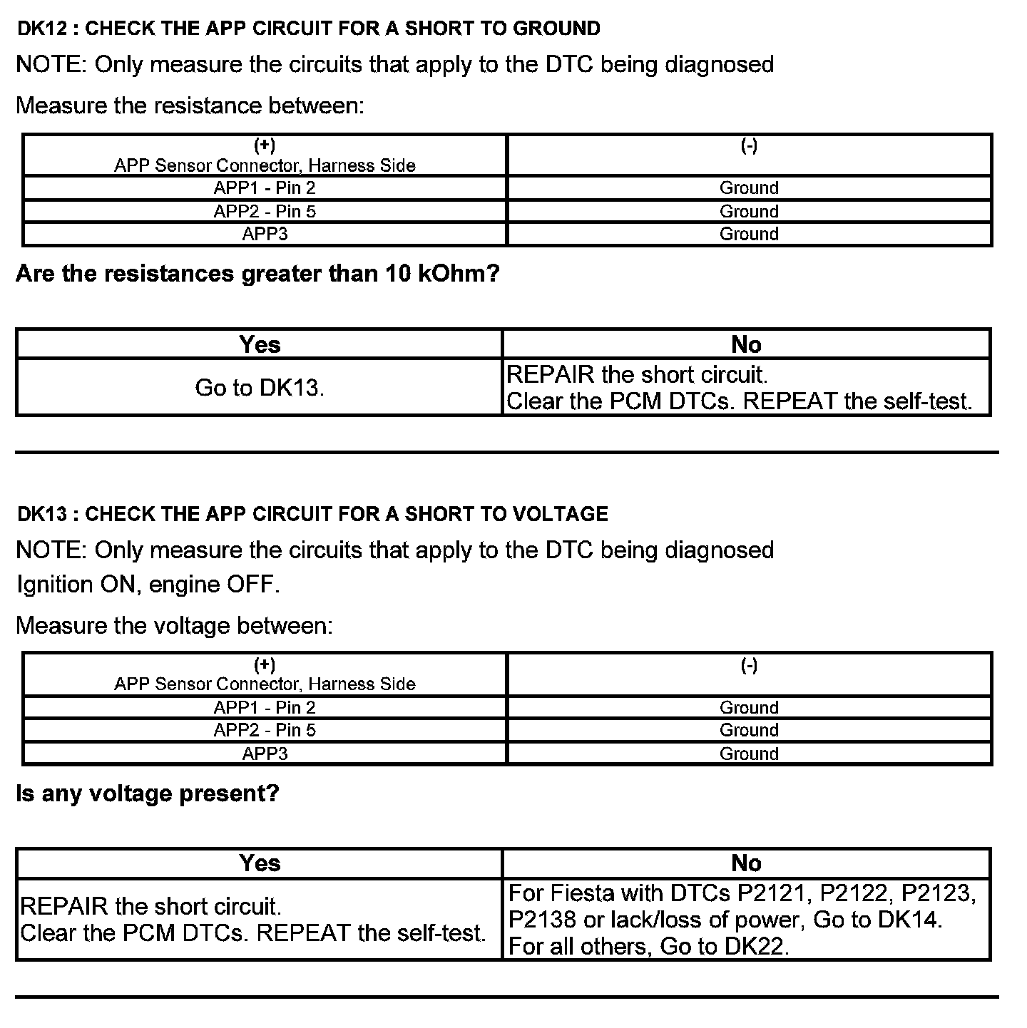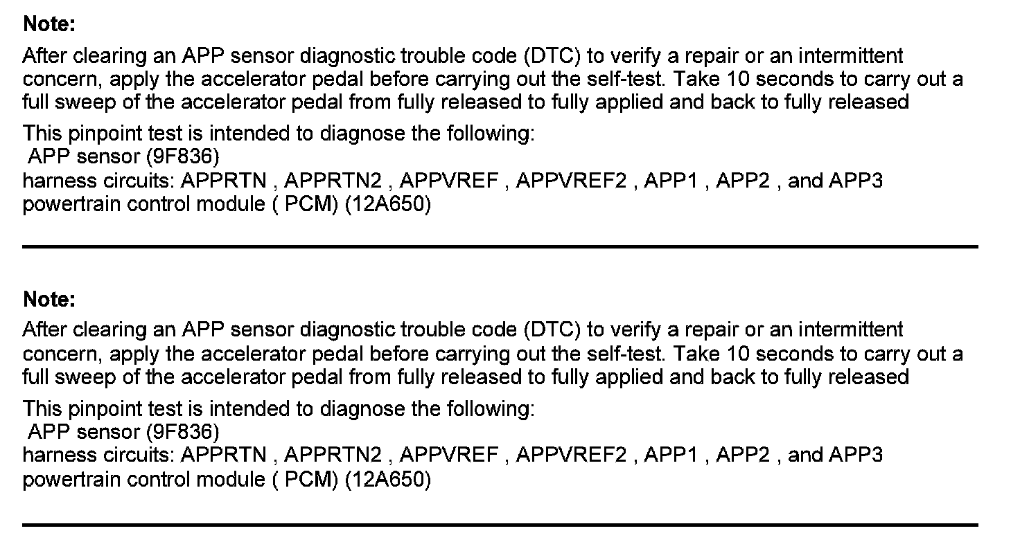 Home >> Ford >> 2012 >> Fusion AWD V6-3.5L >> Repair and Diagnosis >> Powertrain Management >> Computers and Control Systems >> Testing and Inspection >> Pinpoint Tests >> Test DK: Accelerator Pedal Position (APP) Sensor
