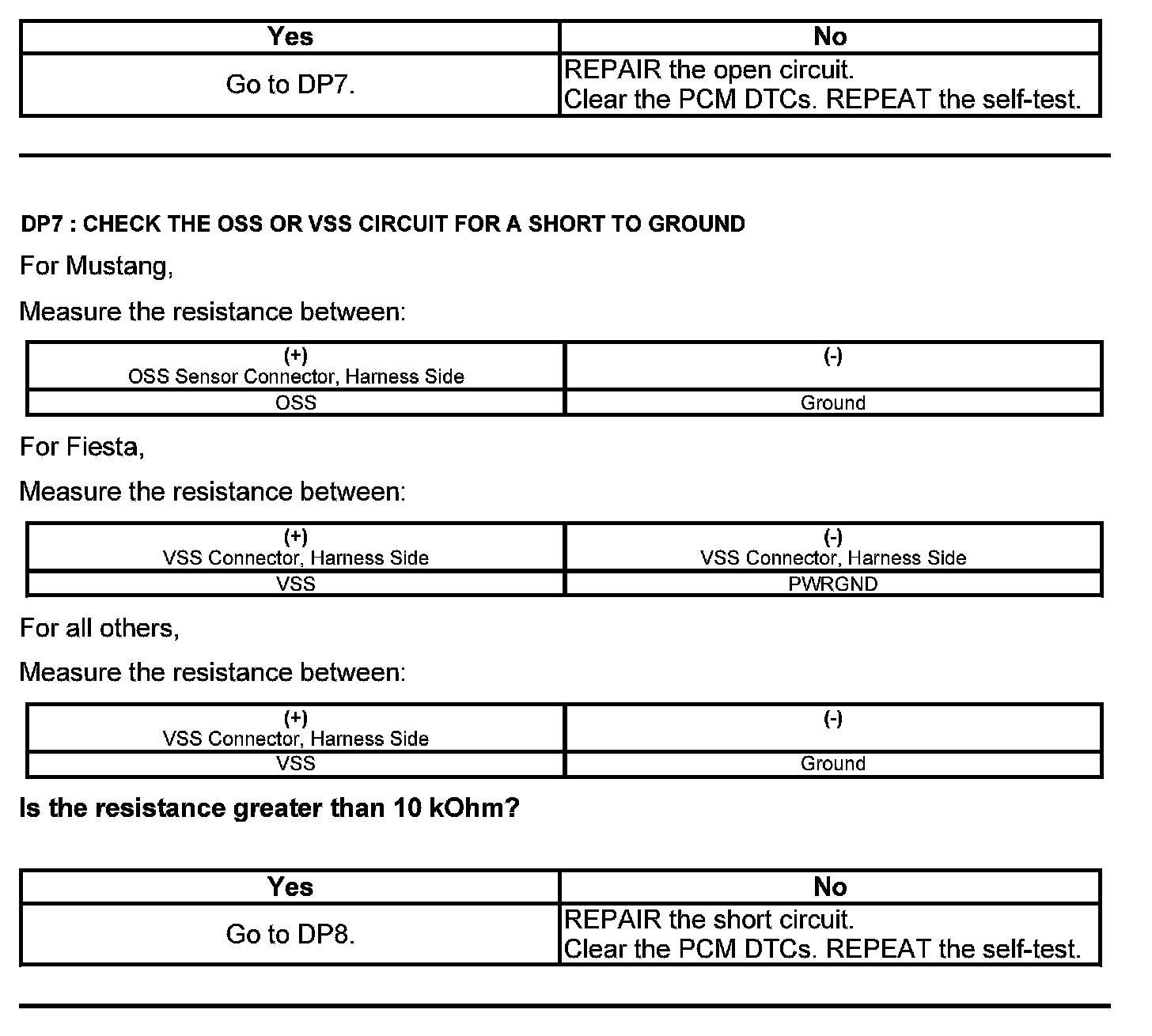 Test DP: Output Shaft Speed (OSS) Sensor/Vehicle Speed Sensor ( VSS)