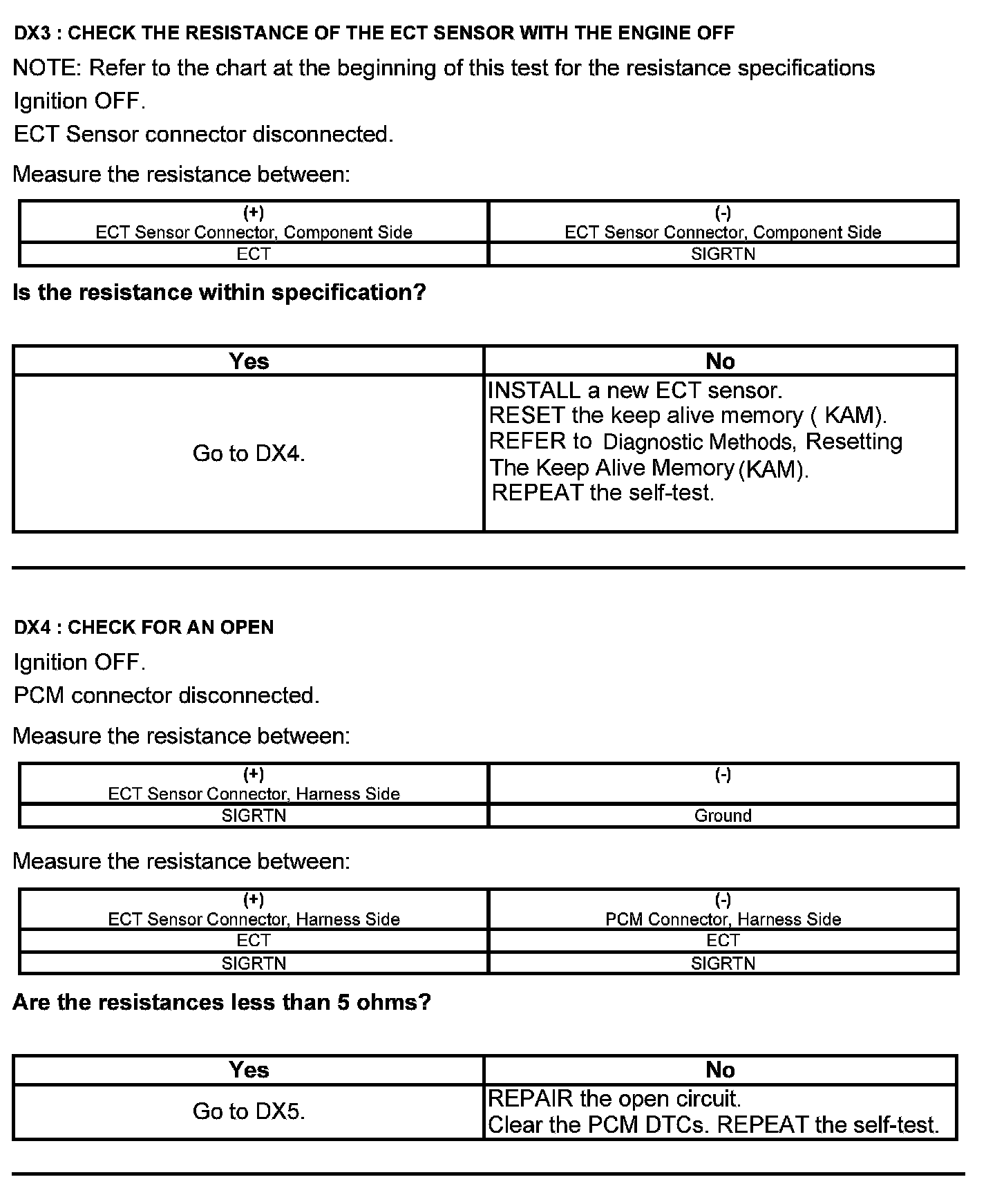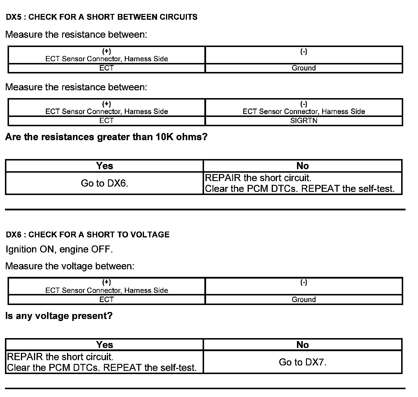 Test DX: Engine Coolant Temperature (ECT) Sensor