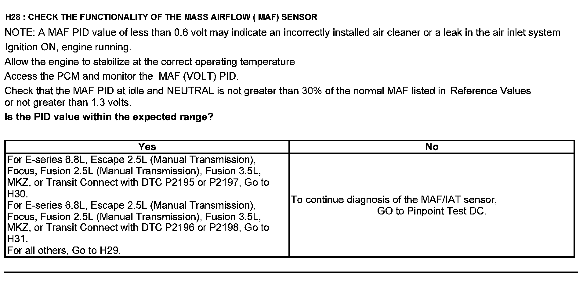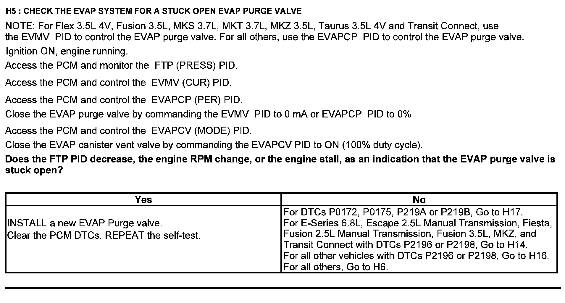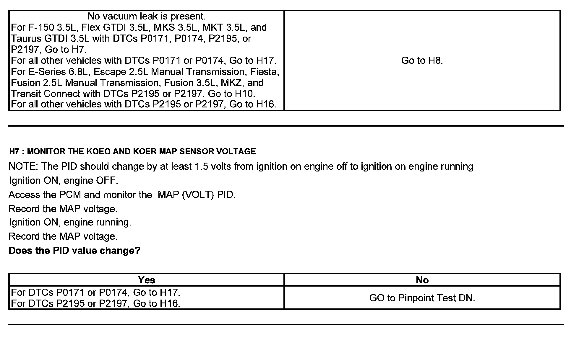 Home >> Ford >> 2012 >> Fusion AWD V6-3.5L >> Repair and Diagnosis >> Powertrain Management >> Computers and Control Systems >> Testing and Inspection >> Pinpoint Tests >> Test H: Fuel Control
