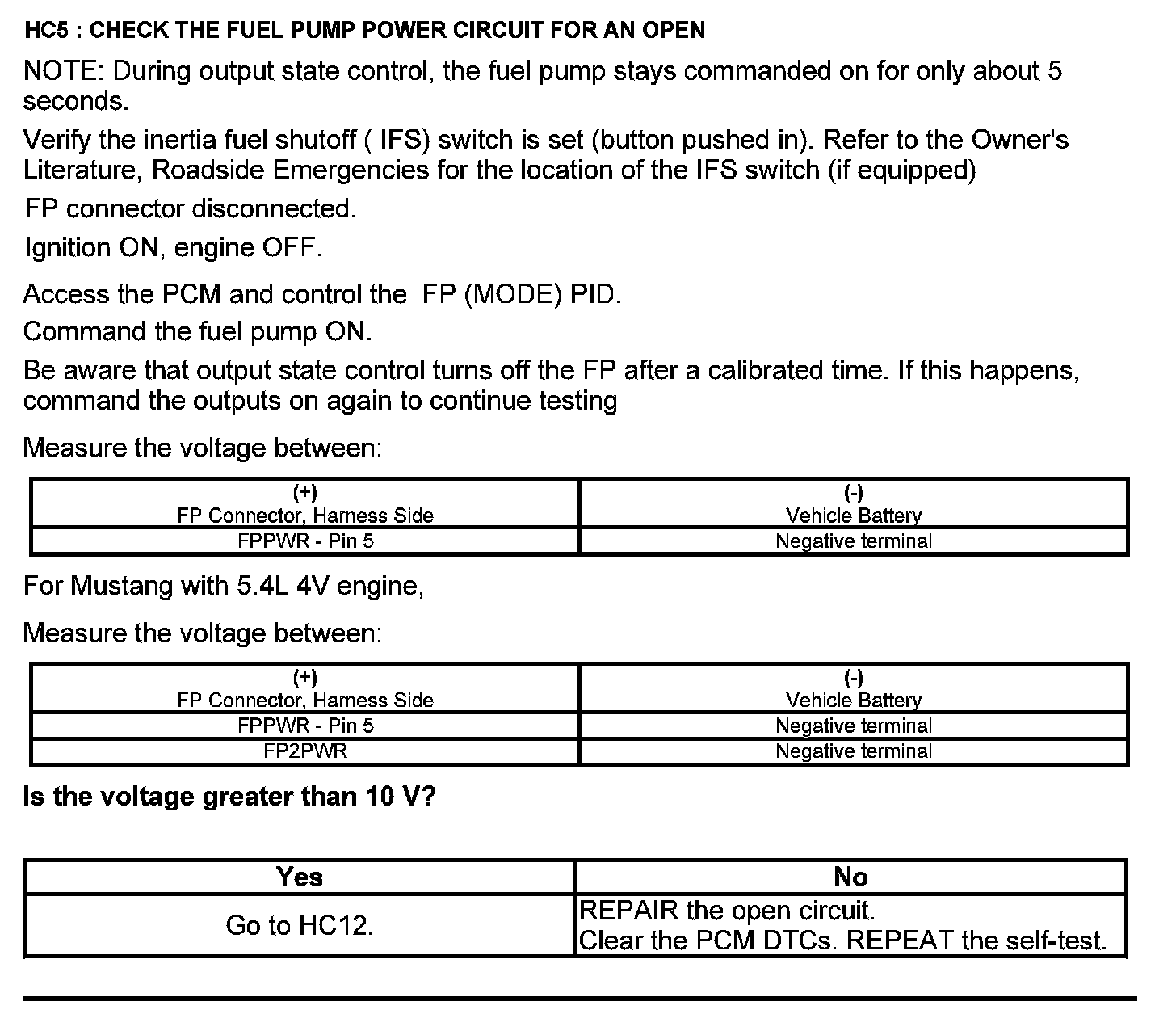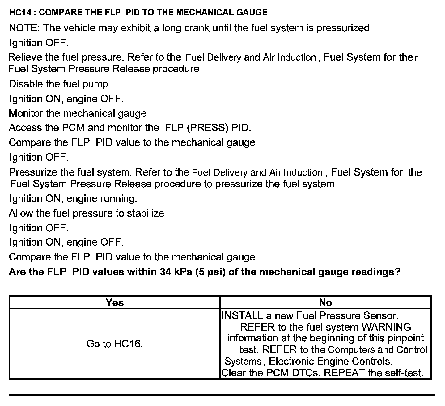 Test HC: Fuel Delivery System