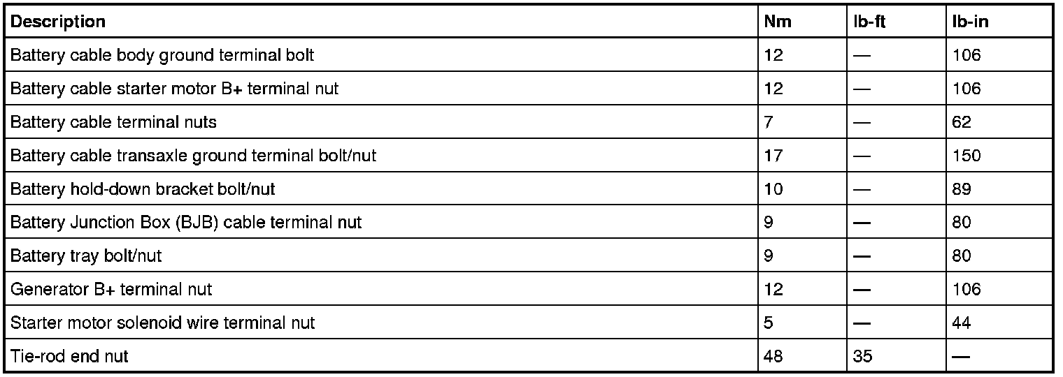 Torque Specifications