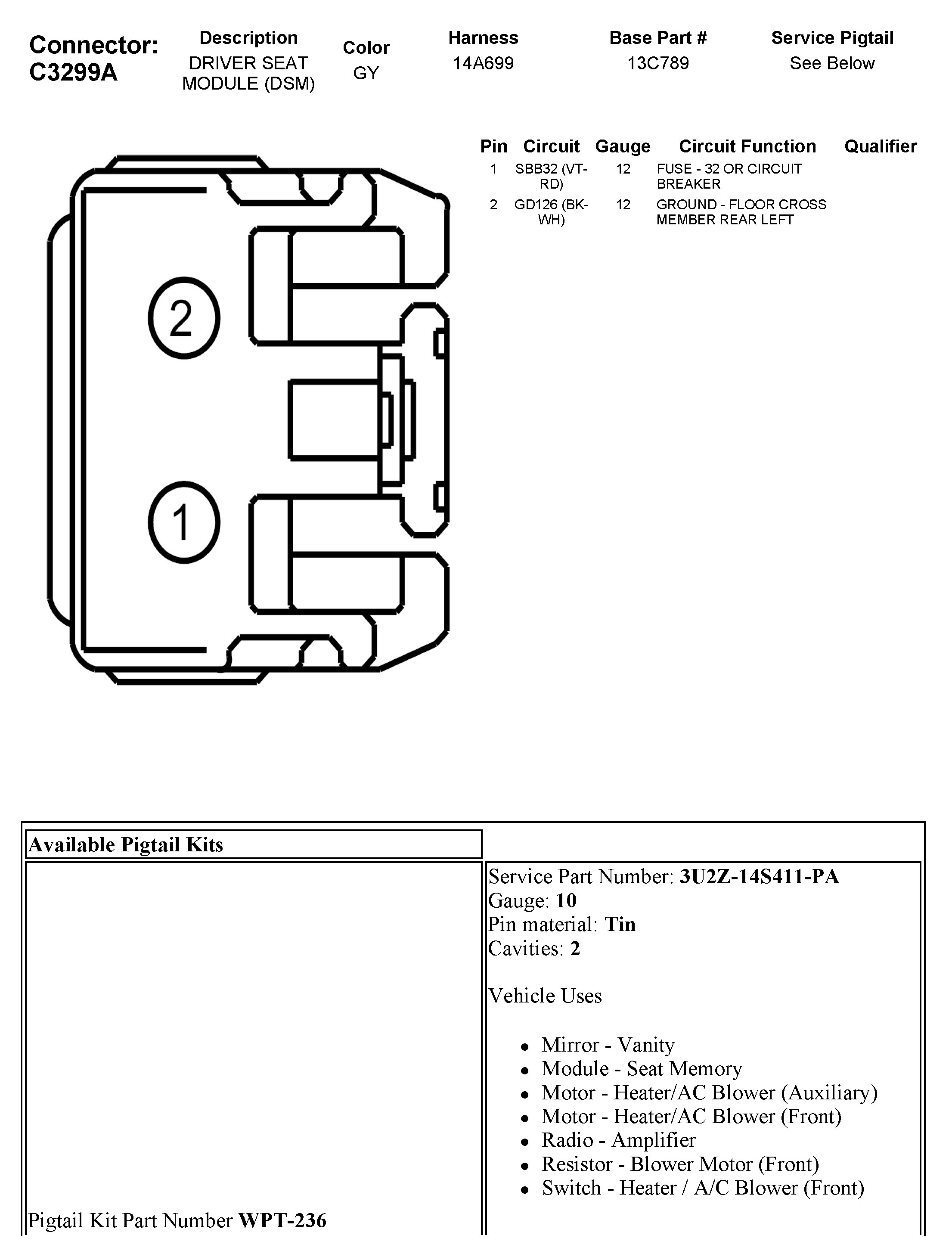 C3299A Driver Seat Module (DSM)