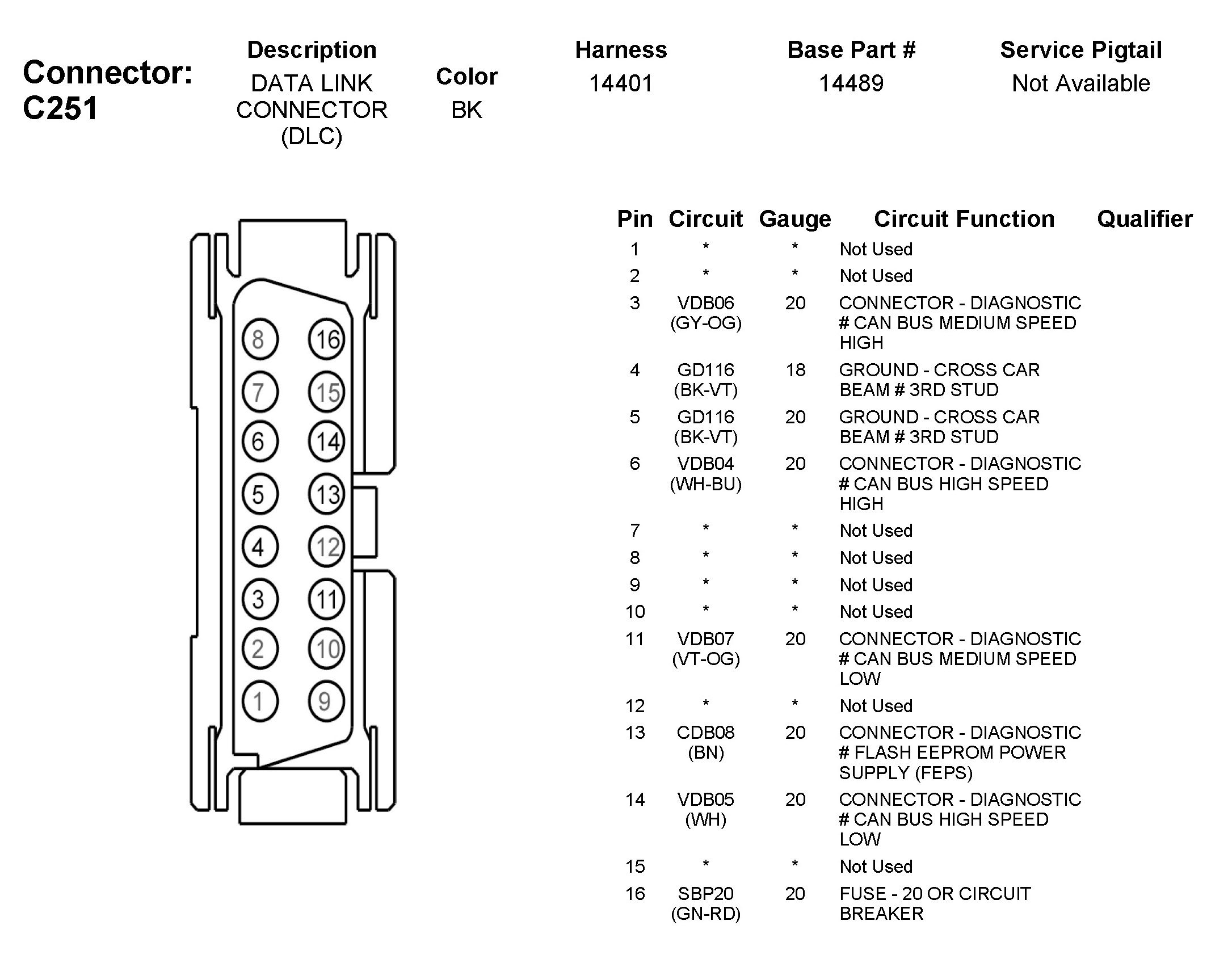 Data Link Connector: Diagrams