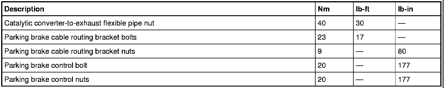 Parking Brake System: Specifications