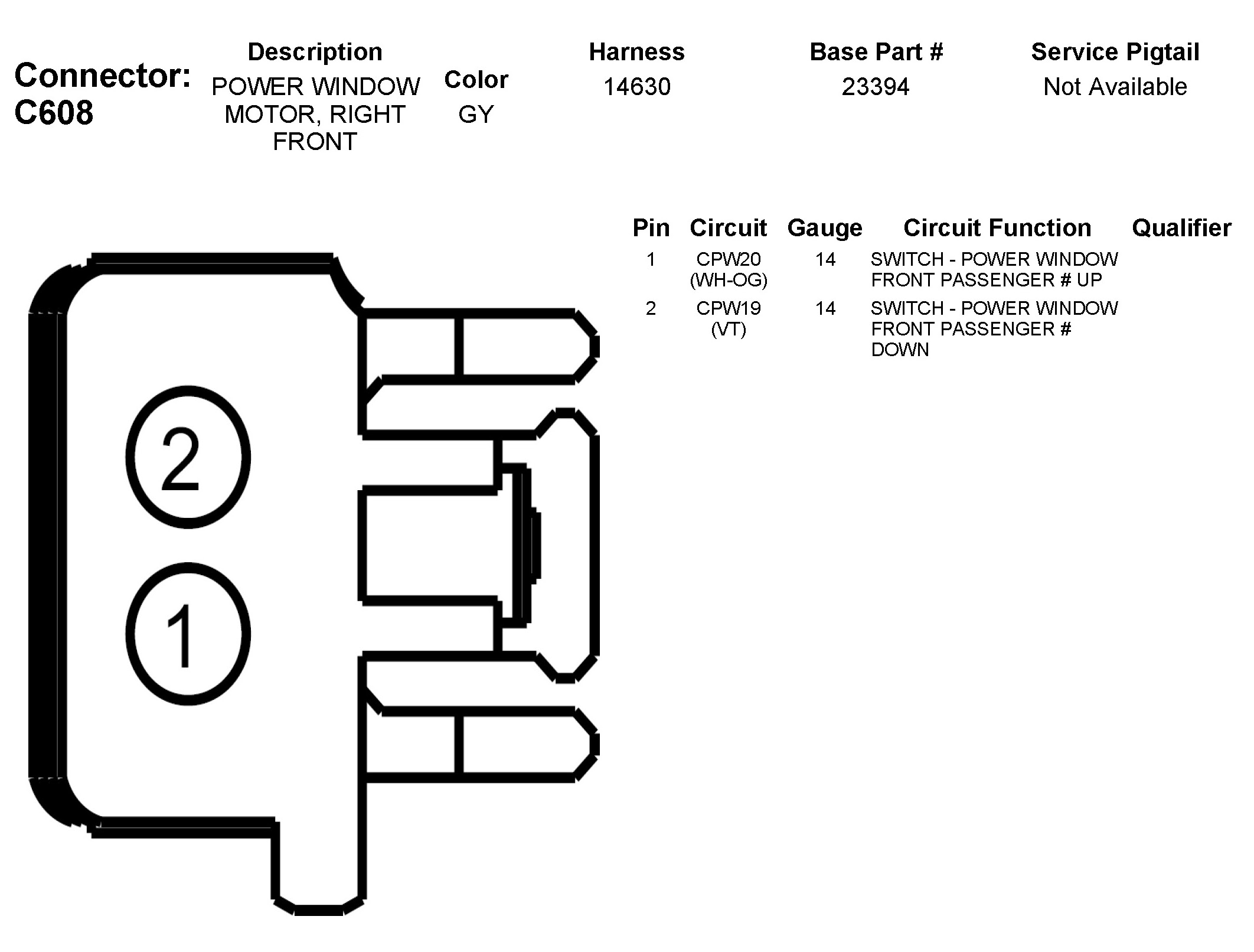 C608 Power Window Motor, Right Front