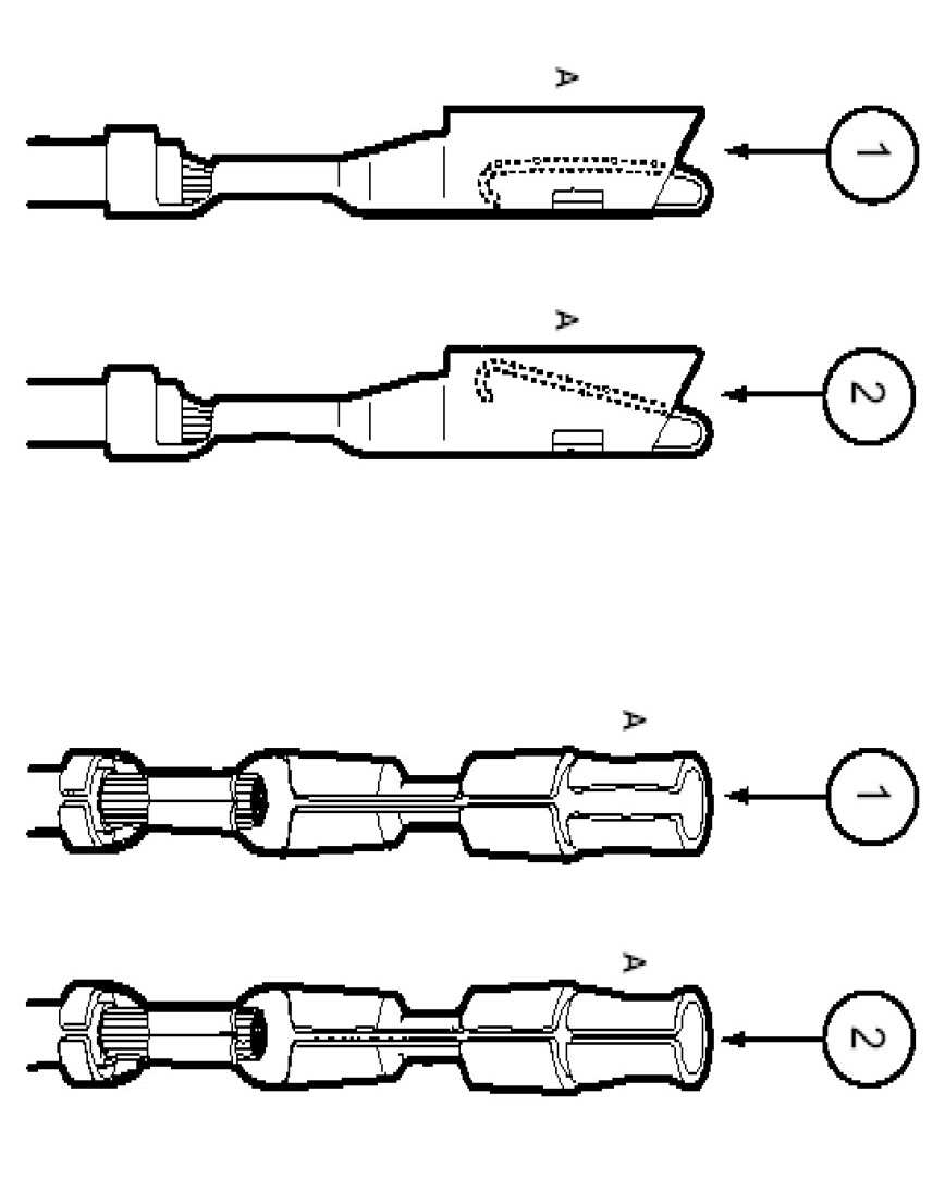 - Use heat shrinkable tubes marked with ES-1 (16-22 GA) or ES-2 (10-18 GA) to seat wire splice.
