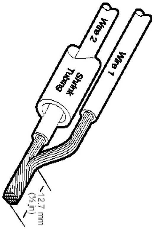 NOTE: Overlap tubing on both wires.