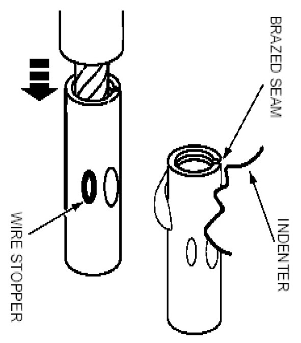 7. If visible, be sure to place the brazed seam toward the indenter.