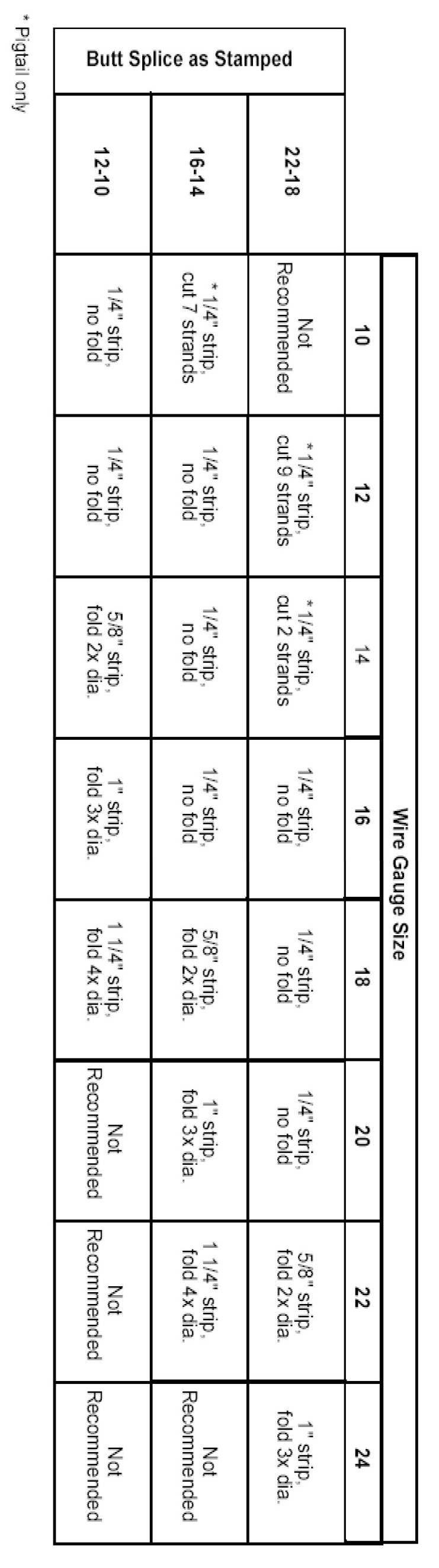 Recommended splicing method - Crimp (For 10-22 AWG Diameter Wire to Like Wire Diameter)