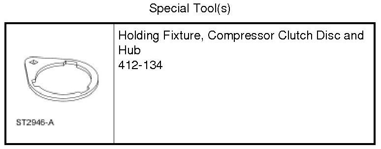 1. Hold the A/C clutch disc and hub with the Compressor Clutch Disc and Hub Holding Fixture.