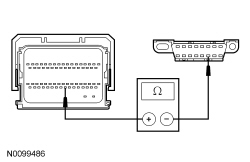- Measure the resistance between the DLC (Data Link Connector) C251-6, circuit VDB04 (WH/BU), harness side and the DLC (Data Link Connector) C251-14, circuit VDB05 (WH), harness side.