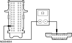 - Measure the resistance between the SJB (Smart Junction Box) C2280B-37, circuit VDB06 (GY/OG), harness side and the DLC (Data Link Connector) C251-3, circuit VDB06 (GY/OG), harness side.