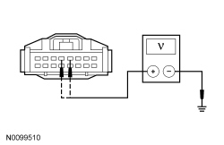 - Measure the voltage between the 4X4 control module C3253-4, circuit CBP35 (YE/GY), harness side and ground; and between the 4X4 control module C3253-5, circuit SBP11 (BU/RD), harness side and ground.